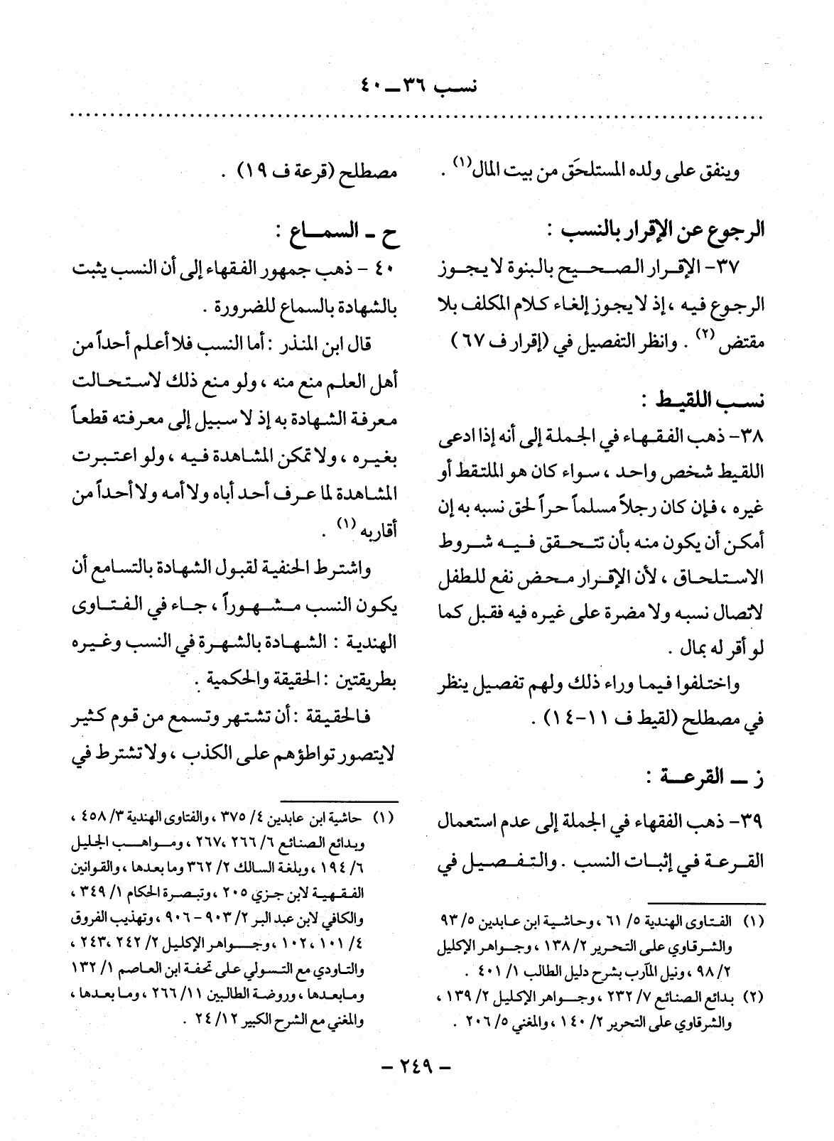 ز - الْقُرْعَةُ: 39 - ذَهَبَ الْفُقَهَاءُ فِي الْجُمْلَةِ إِلَى عَدَمِ اسْتِعْمَال الْقُرْعَةِ فِي إِثْبَاتِ النَّسَبِ. وَالتَّفْصِيل فِي