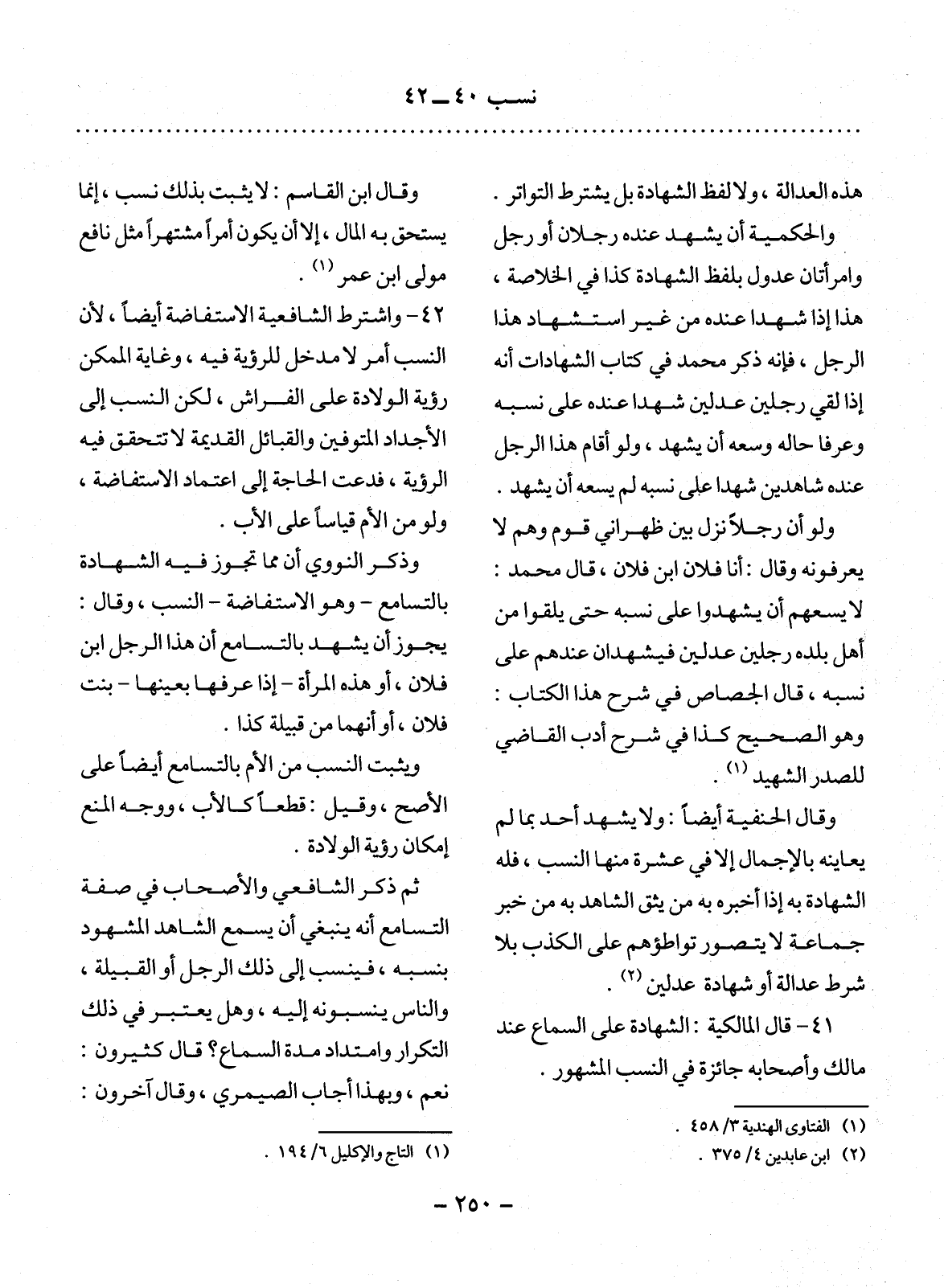 41 - قَال الْمَالِكِيَّةُ: الشَّهَادَةُ عَلَى السَّمَاعِ عِنْدَ مَالِكٍ وَأَصْحَابِهِ جَائِزَةٌ فِي النَّسَبِ الْمَشْهُورِ.