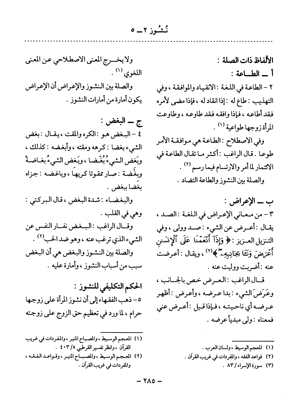 (1) المعجم الوسيط، والمصباح المنير، والمفردات في غريب القرآن، وانظر تفسير القرطبي 5 / 403.