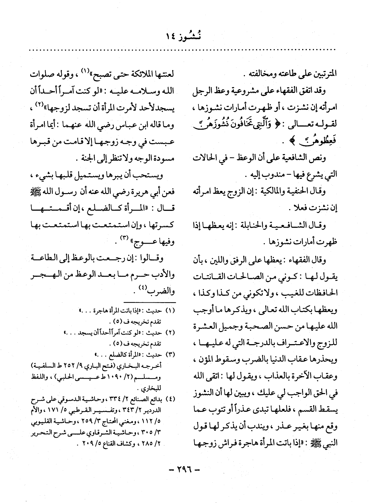 (4) بَدَائِع الصَّنَائِع 2 / 334، وَحَاشِيَة الدُّسُوقِيّ عَلَى شَرْح الدردير 2 / 343، وَتَفْسِير الْقُرْطُبِيّ 5 / 171، وَالأُْمّ 5 / 112، ومغني الْمُحْتَاج 3 / 259، وَحَاشِيَة الْقَلْيُوبِيّ 3 / 305، وَحَاشِيَة الشَّرْقَاوَيَّ عَلَى شَرْح التَّحْرِير 2 / 285، وَكَشَّاف الْقِنَاع 5 / 209.
