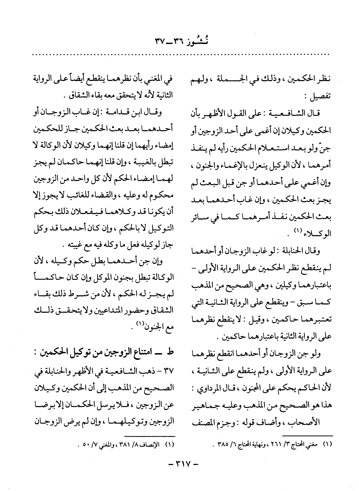 نَظَرُ الْحَكَمَيْنِ، وَذَلِكَ فِي الْجُمْلَةِ، وَلَهُمْ تَفْصِيلٌ: