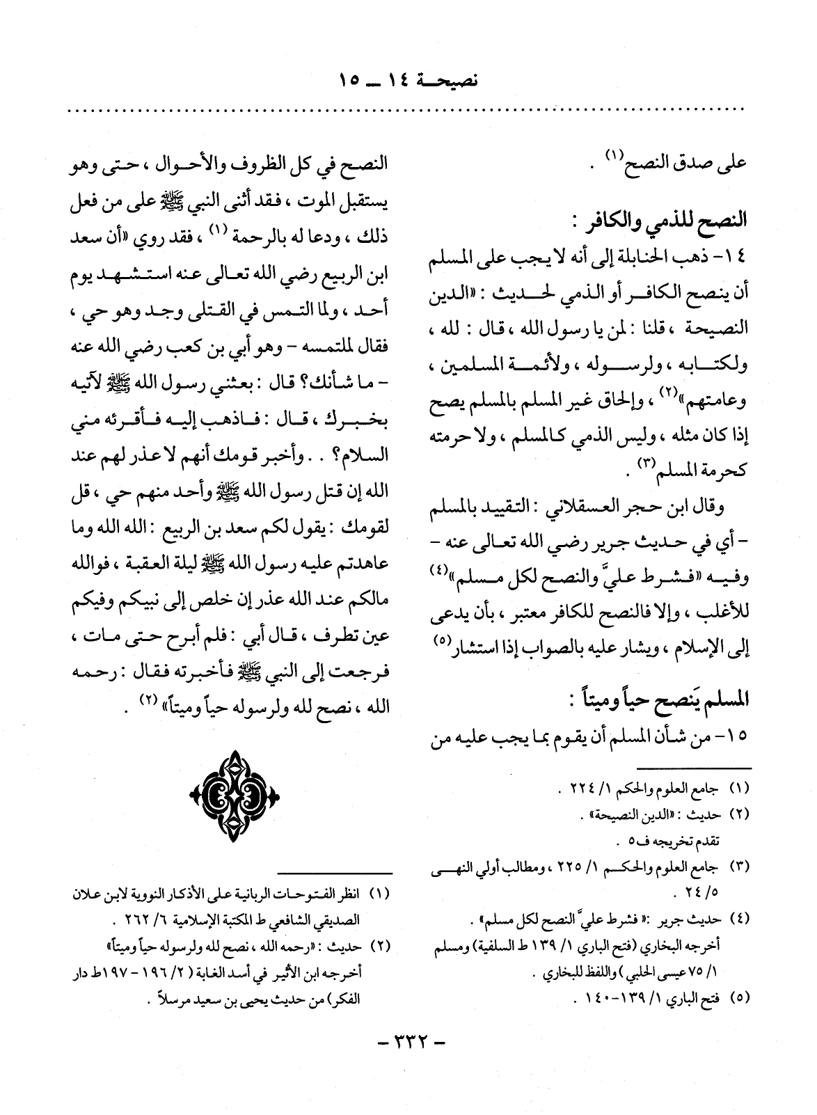(3) حديث جرير: فشرط علي النصح لكل مسلم. أخرجه البخاري (فتح الباري 1 / 139 ط السلفية) ومسلم (1 / 75 عيسى الحلبي) واللفظ للبخاري.