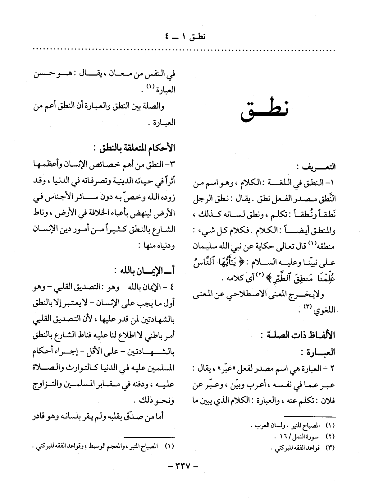 الأَْحْكَامُ الْمُتَعَلِّقَةُ بِالنُّطْقِ: