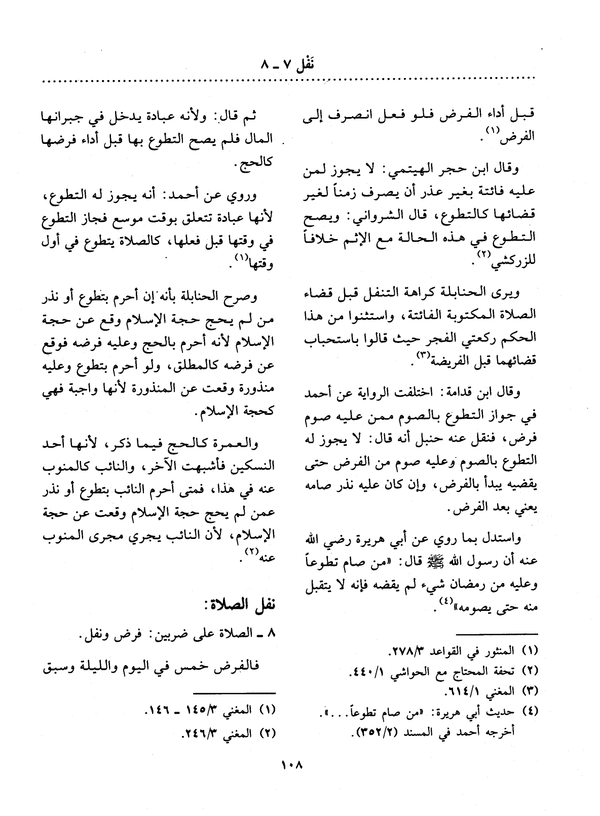 8 - الصَّلاَةُ عَلَى ضَرْبَيْنِ: فَرْضٌ وَنَفْلٌ.