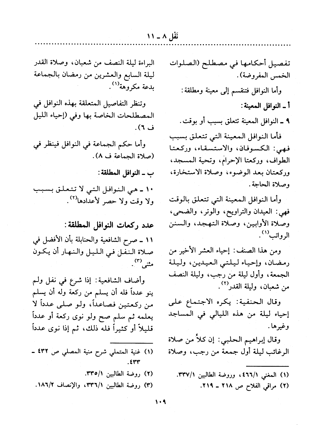 وَتُنْظَرُ التَّفَاصِيل الْمُتَعَلِّقَةُ بِهَذِهِ النَّوَافِل فِي الْمُصْطَلَحَاتِ الْخَاصَّةِ بِهَا وَفِي (إِحْيَاء اللَّيْل ف 6) .