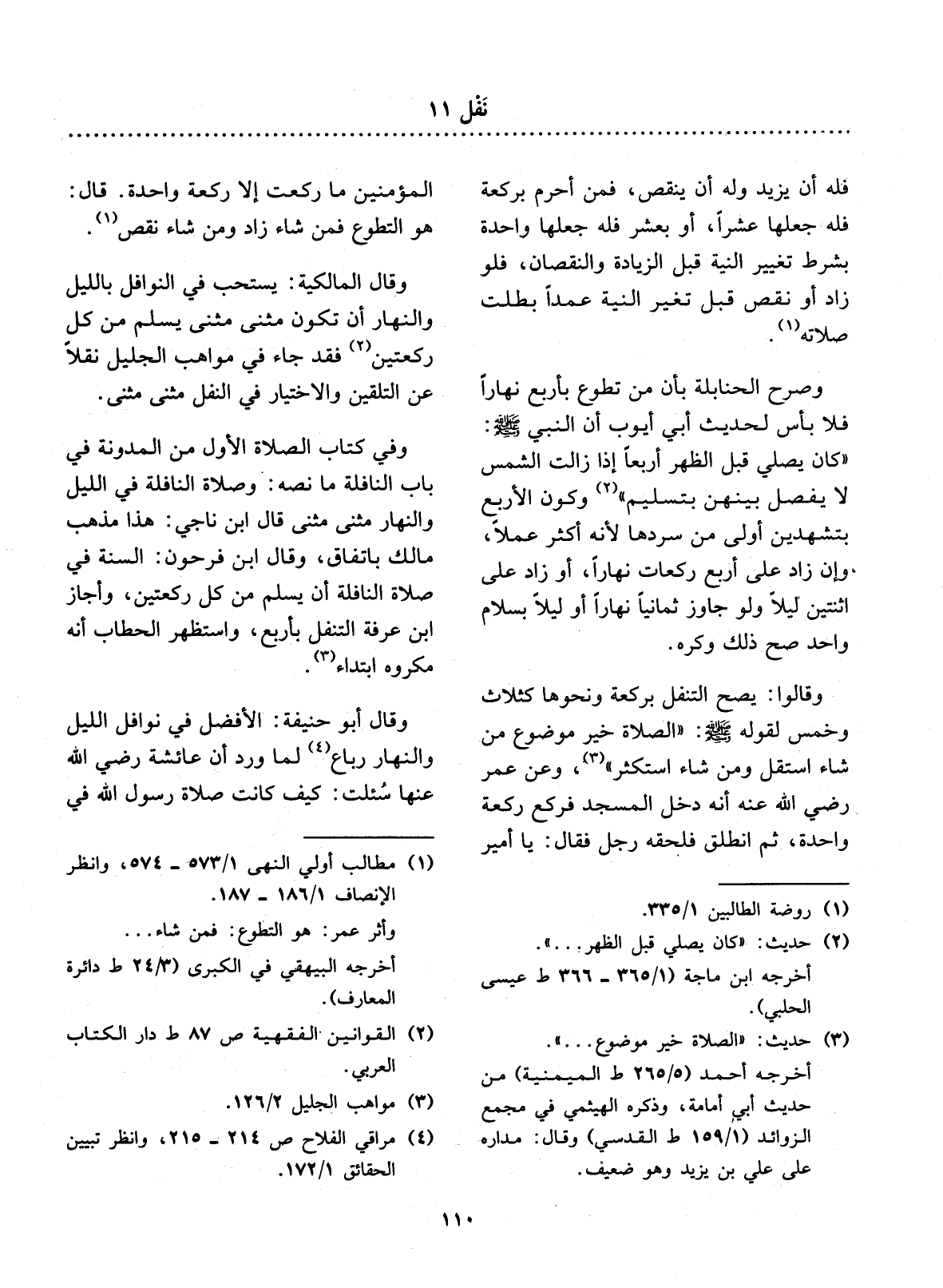 (1) مطالب أولي النهى 1 / 573 - 574، وانظر الإنصاف 1 / 186 - 187. وأثر عمر: هو التطوع: فمن شاء. . . أخرجه البيهقي في الكبرى (3 / 24 ط دائرة المعارف) .
