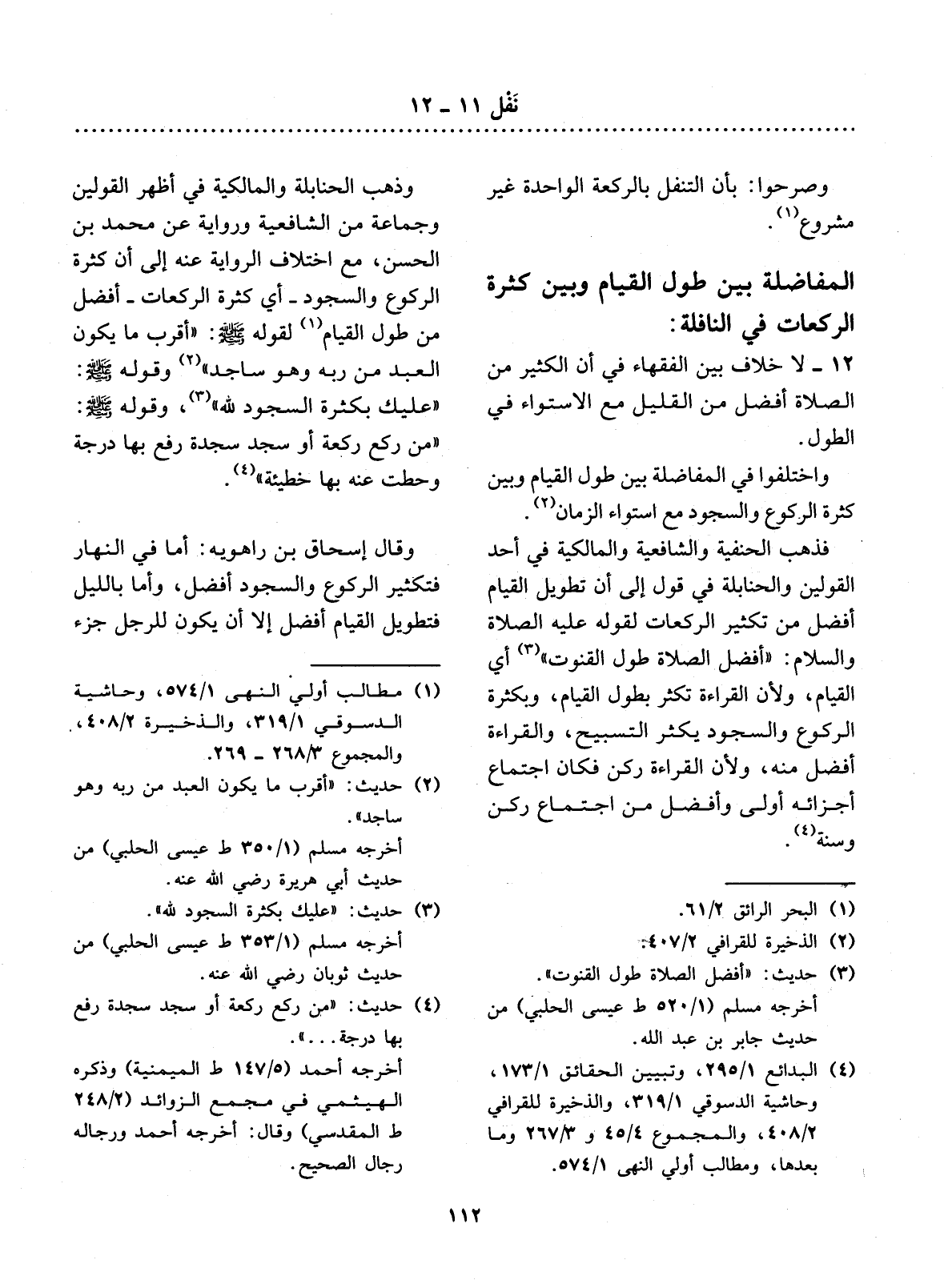 12 - لاَ خِلاَفَ بَيْنِ الْفُقَهَاءِ فِي أَنَّ الْكَثِيرَ مِنَ الصَّلاَةِ أَفْضَل مِنَ الْقَلِيل مَعَ الاِسْتِوَاءِ فِي الطُّول.