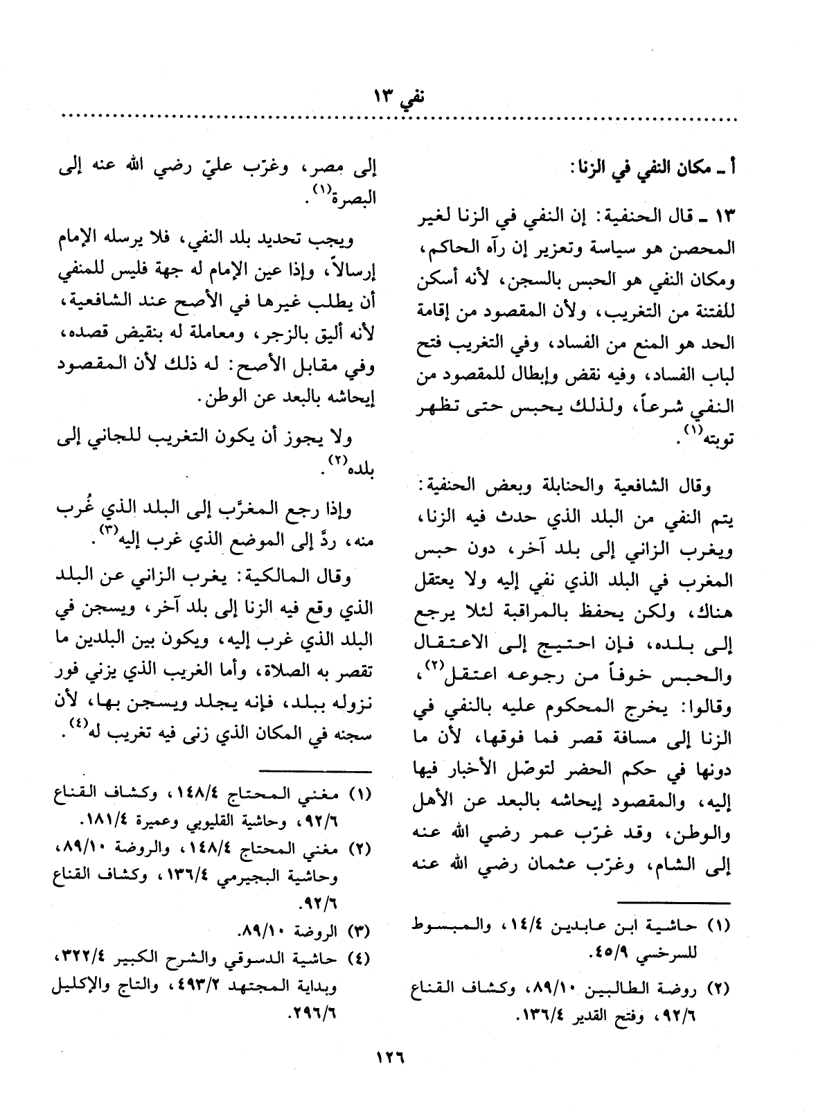 أ - مَكَانُ النَّفْيِ فِي الزِّنَا: