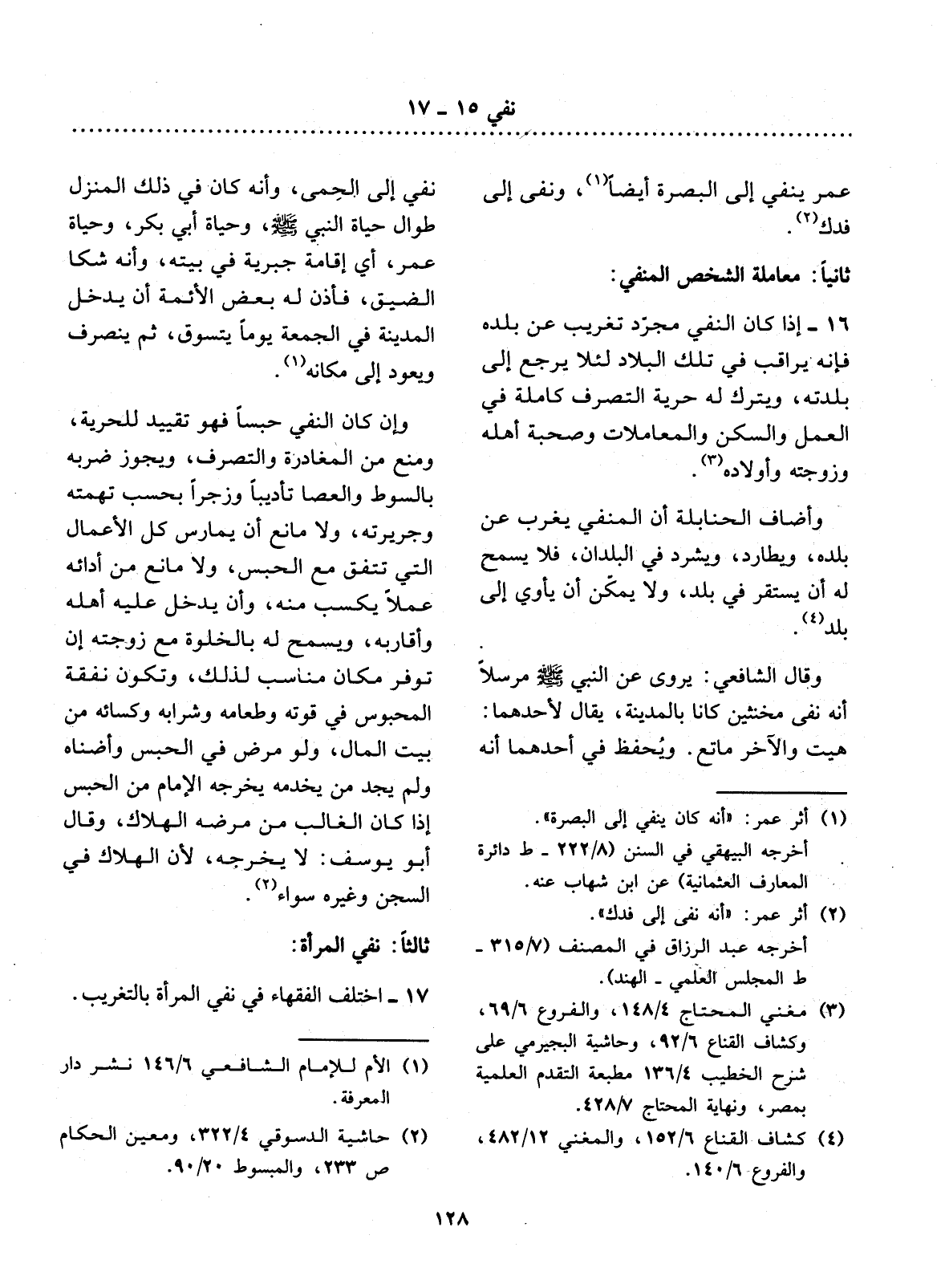17 - اخْتَلَفَ الْفُقَهَاءُ فِي نَفِي الْمَرْأَةِ بِالتَّغْرِيبِ.