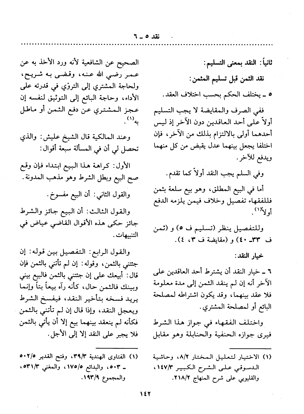 وَلِلتَّفْصِيل يُنْظَرُ (تَسْلِيم ف 5) وَ (ثَمَن ف 33 - 40) وَ (مُقَايَضَة ف 3، 4) .