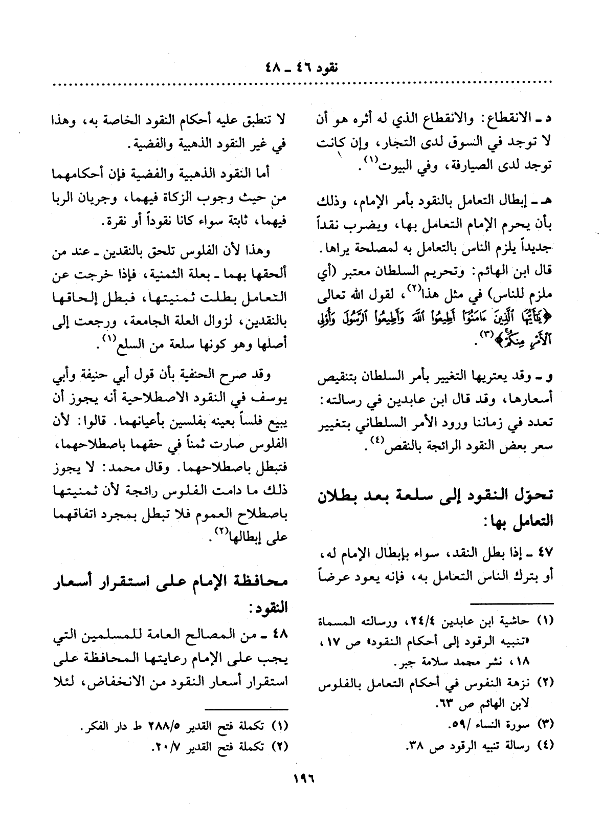 (1) حاشية ابن عابدين 4 / 24، ورسالته المسماة " تنبيه الرقود إلى أحكام النقود " ص 17، 18، نشر محمد سلامة جبر.