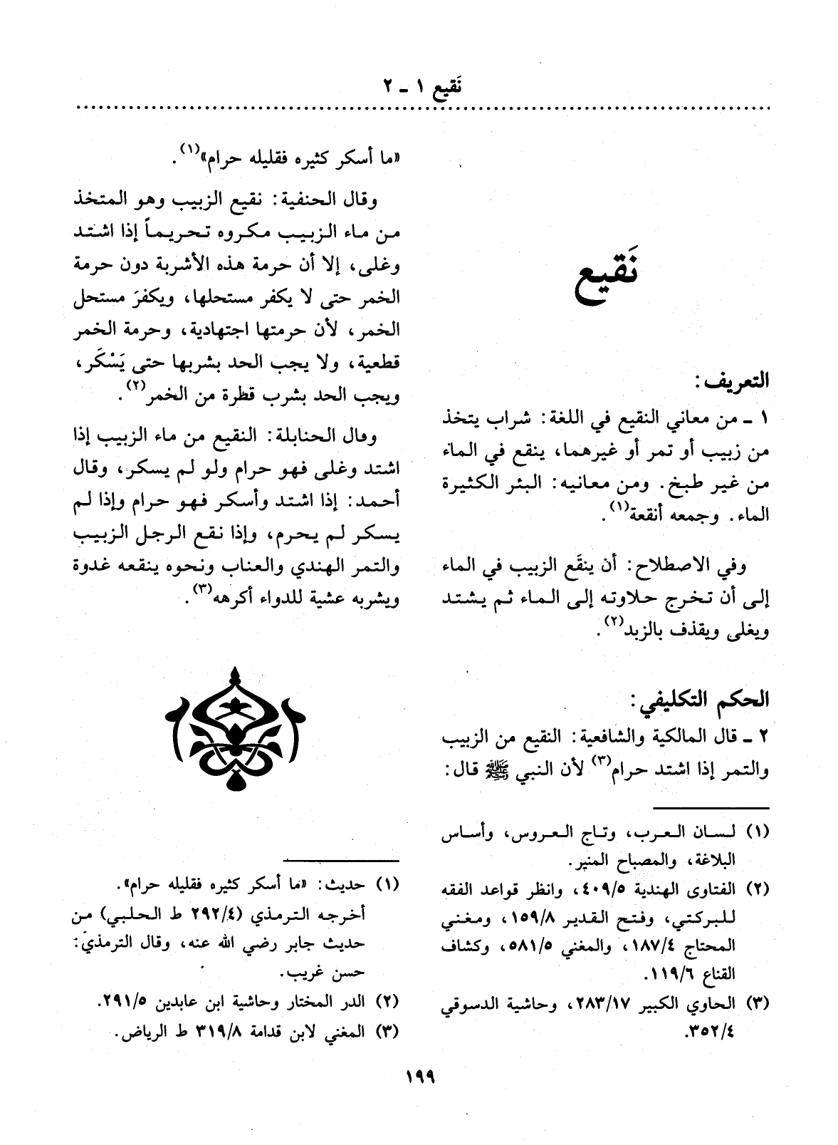 (1) حديث: " ما أسكر كثيره فقليله حرام ". أخرجه الترمذي (4 / 292 ط الحلبي) من حديث جابر رضي الله عنه، وقال الترمذي: حسن غريب