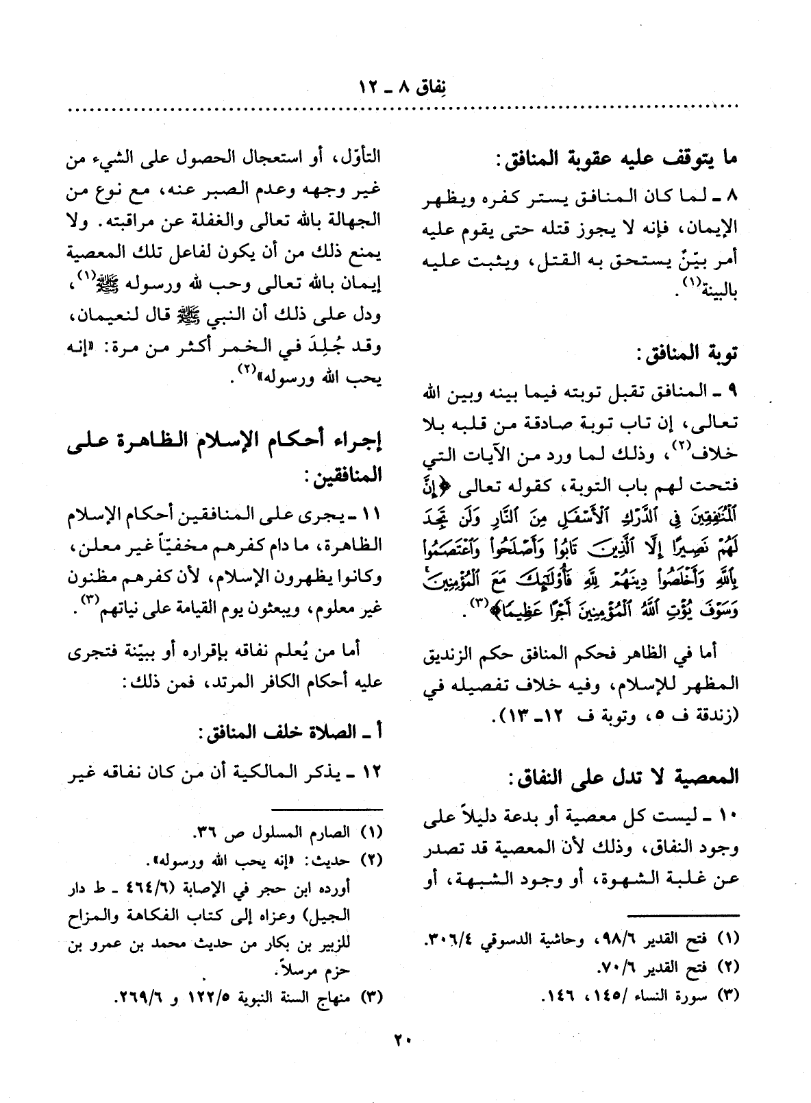 12 - يَذْكُرُ الْمَالِكِيَّةُ أَنَّ مَنْ كَانَ نِفَاقُهُ غَيْرَ