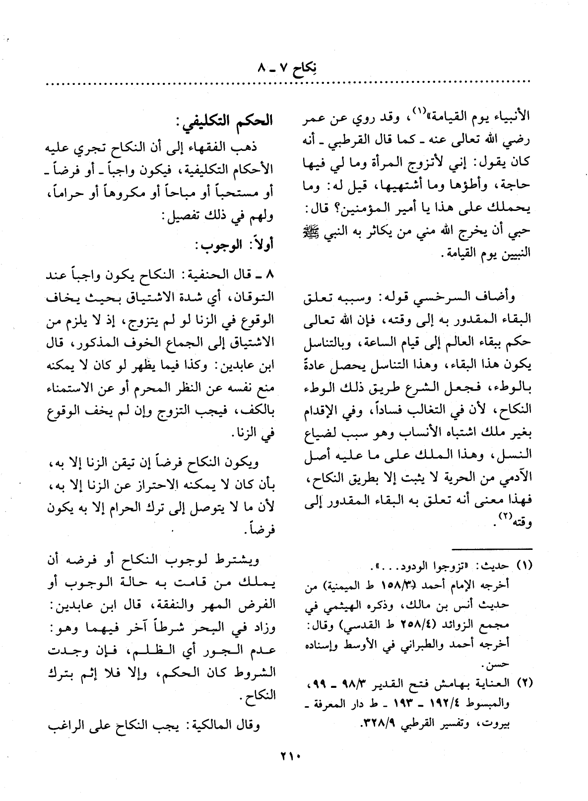 8 - قَال الْحَنَفِيَّةُ: النِّكَاحُ يَكُونُ وَاجِبًا عِنْدَ التَّوَقَانِ، أَيْ شِدَّةِ الاِشْتِيَاقِ بِحَيْثُ يَخَافُ الْوُقُوعَ فِي الزِّنَا لَوْ لَمْ يَتَزَوَّجْ؛ إِذْ لاَ يَلْزَمُ مِنَ الاِشْتِيَاقِ إِلَى الْجِمَاعِ الْخَوْفُ الْمَذْكُورُ، قَال ابْنُ عَابِدِينَ: وَكَذَا فِيمَا يَظْهَرُ لَوْ كَانَ لاَ يُمْكِنُهُ مَنْعُ نَفْسِهِ عَنِ النَّظَرِ الْمُحَرَّمِ أَوْ عَنِ الاِسْتِمْنَاءِ بِالْكَفِّ، فَيَجِبُ التَّزَوُّجُ وَإِنْ لَمْ يَخَفِ الْوُقُوعَ فِي الزِّنَا.