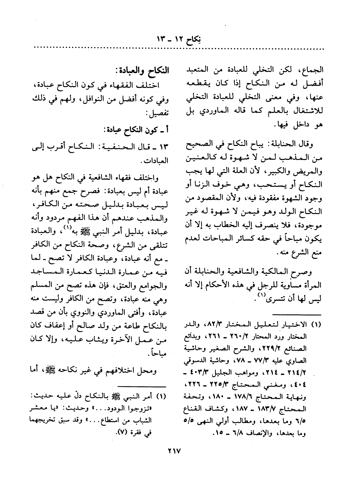 13 - قَال الْحَنَفِيَّةُ: النِّكَاحُ أَقْرَبُ إِلَى الْعِبَادَاتِ.