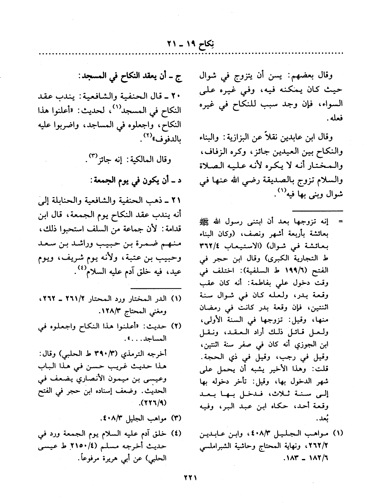 (1) الدر المختار ورد المحتار 2 / 261 - 262، ومغني المحتاج 3 / 128.