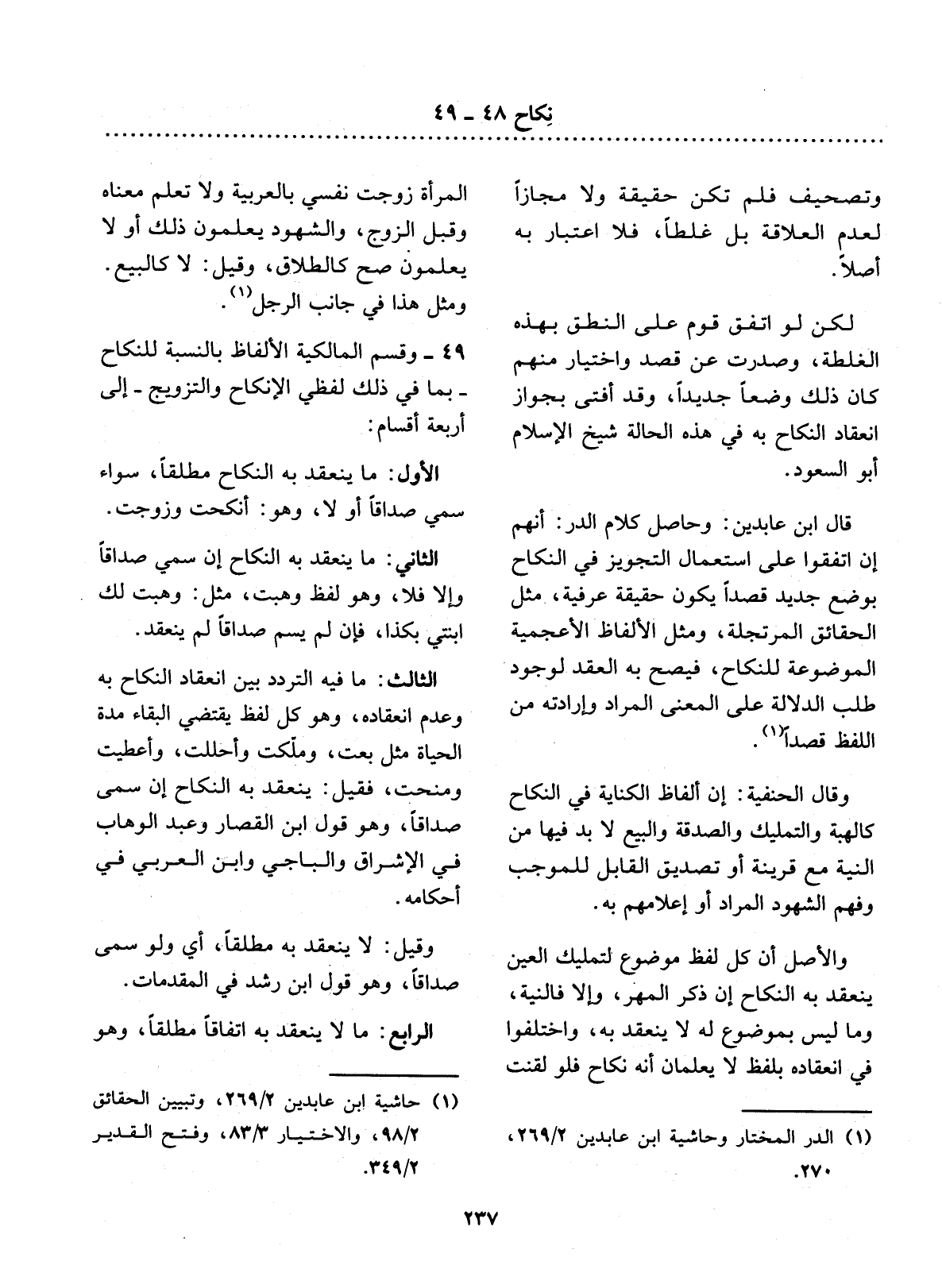 (1) الدر المختار وحاشية ابن عابدين 2 / 269، 270.