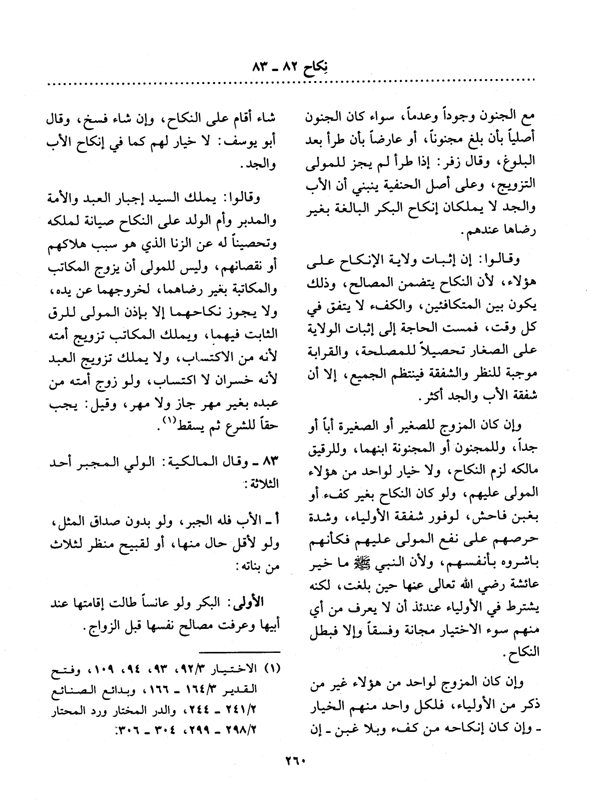 (1) الاختيار 3 / 92، 93، 94، 109، وفتح القدير 3 / 164 - 166، وبدائع الصنائع 2 / 241 - 244، والدر المختار ورد المحتار 2 / 298 - 299، 304 - 306.