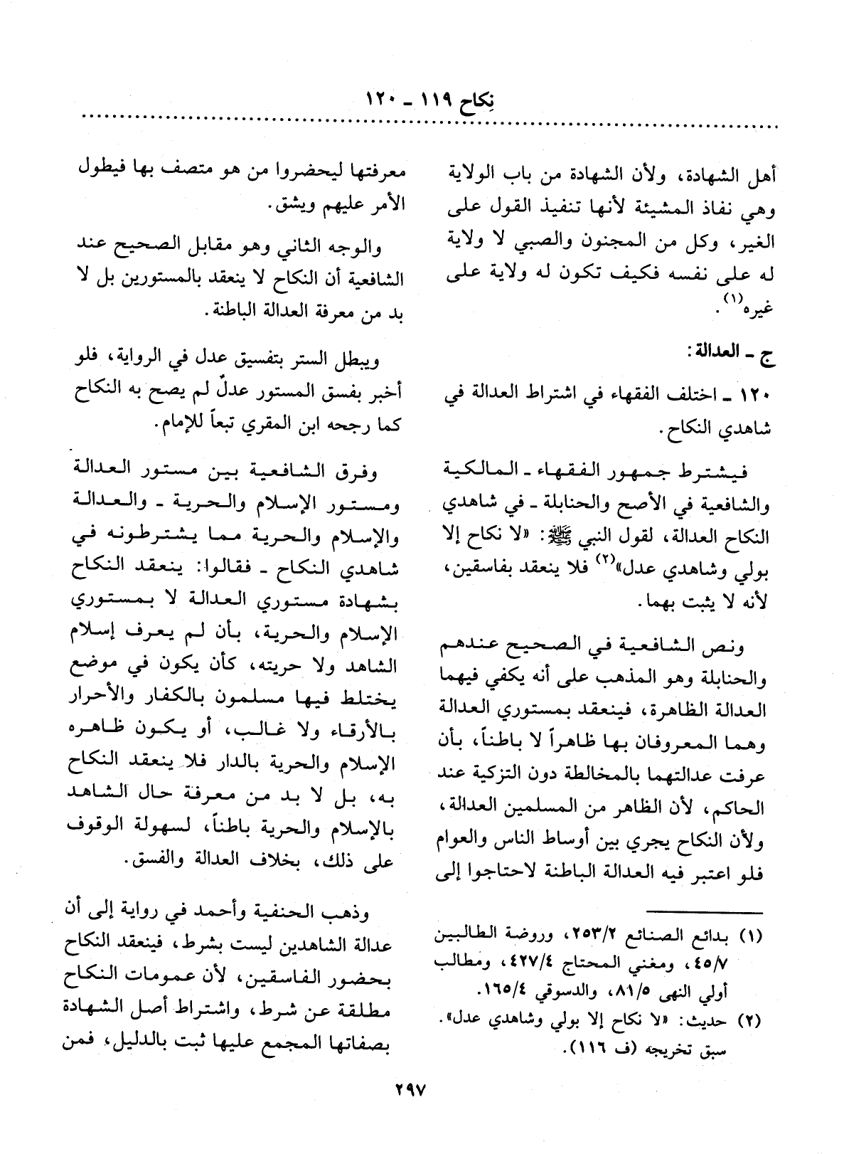 120 - اخْتَلَفَ الْفُقَهَاءُ فِي اشْتِرَاطِ الْعَدَالَةِ فِي شَاهِدَيِ النِّكَاحِ.