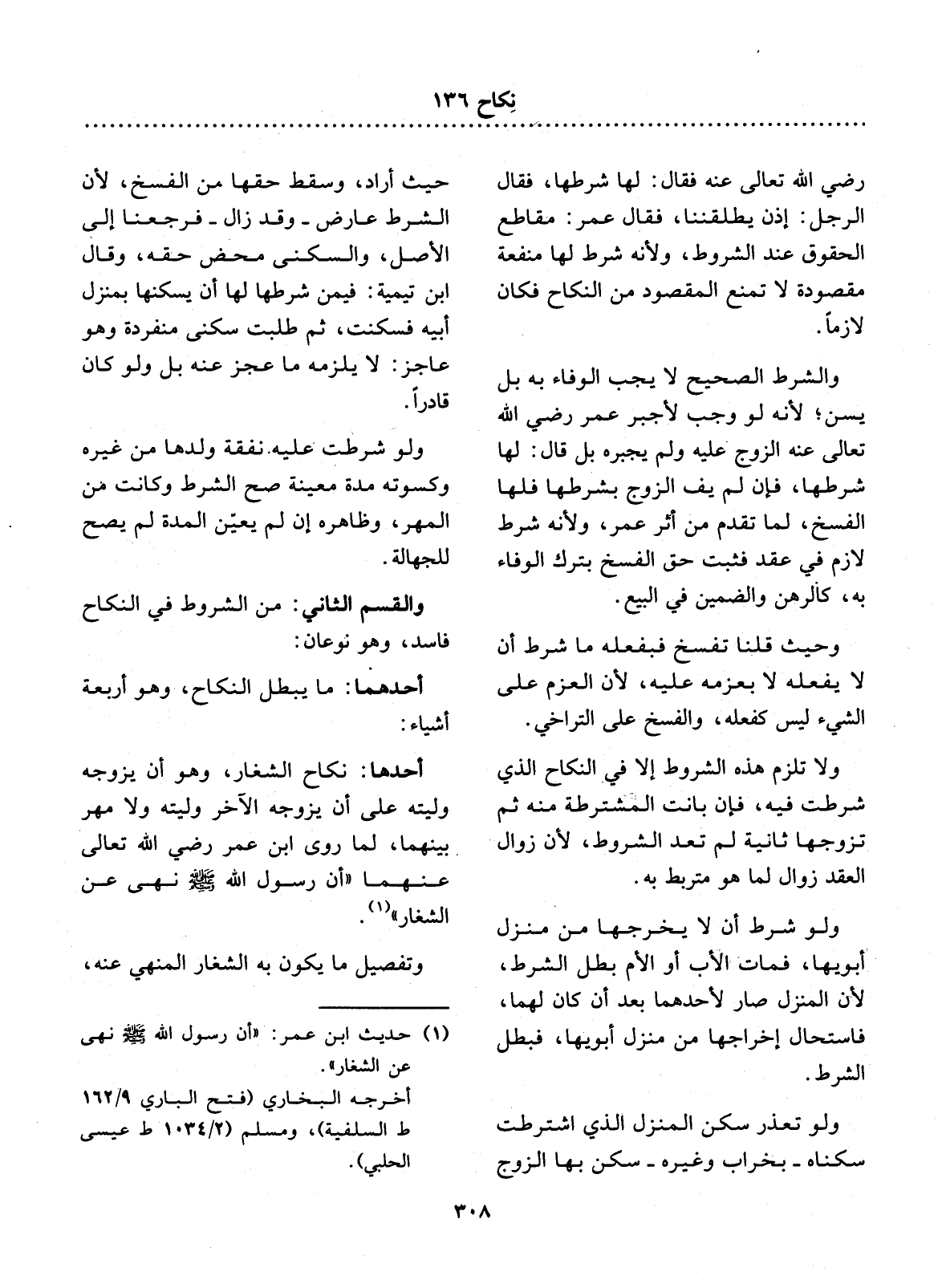 (1) حديث ابن عمر: " أن رسول الله صلى الله عليه وسلم نهى عن الشغار ". أخرجه البخاري (فتح الباري 9 / 162 ط السلفية) ، ومسلم (2 / 1034 ط عيسى الحلبي) .