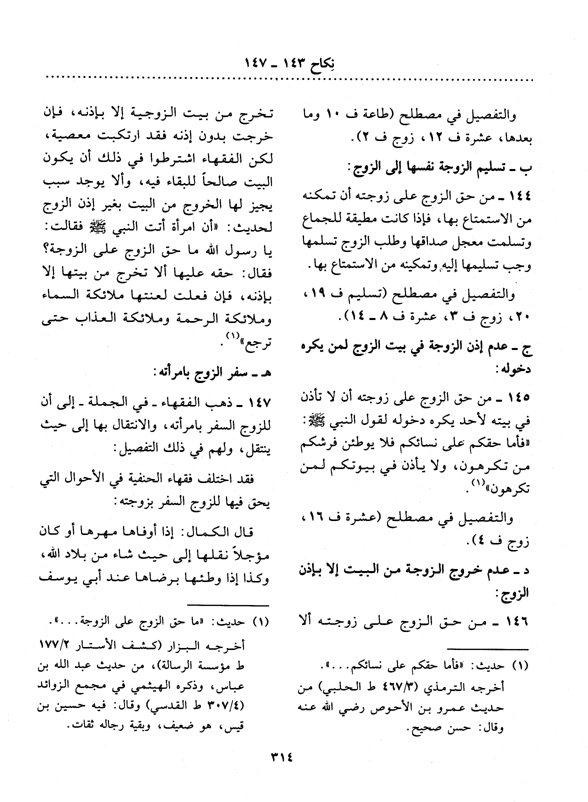 وَالتَّفْصِيل فِي مُصْطَلَحِ (تَسْلِيم ف 19، 20، زَوْج ف 3، عِشْرَة ف 8 - 14) .