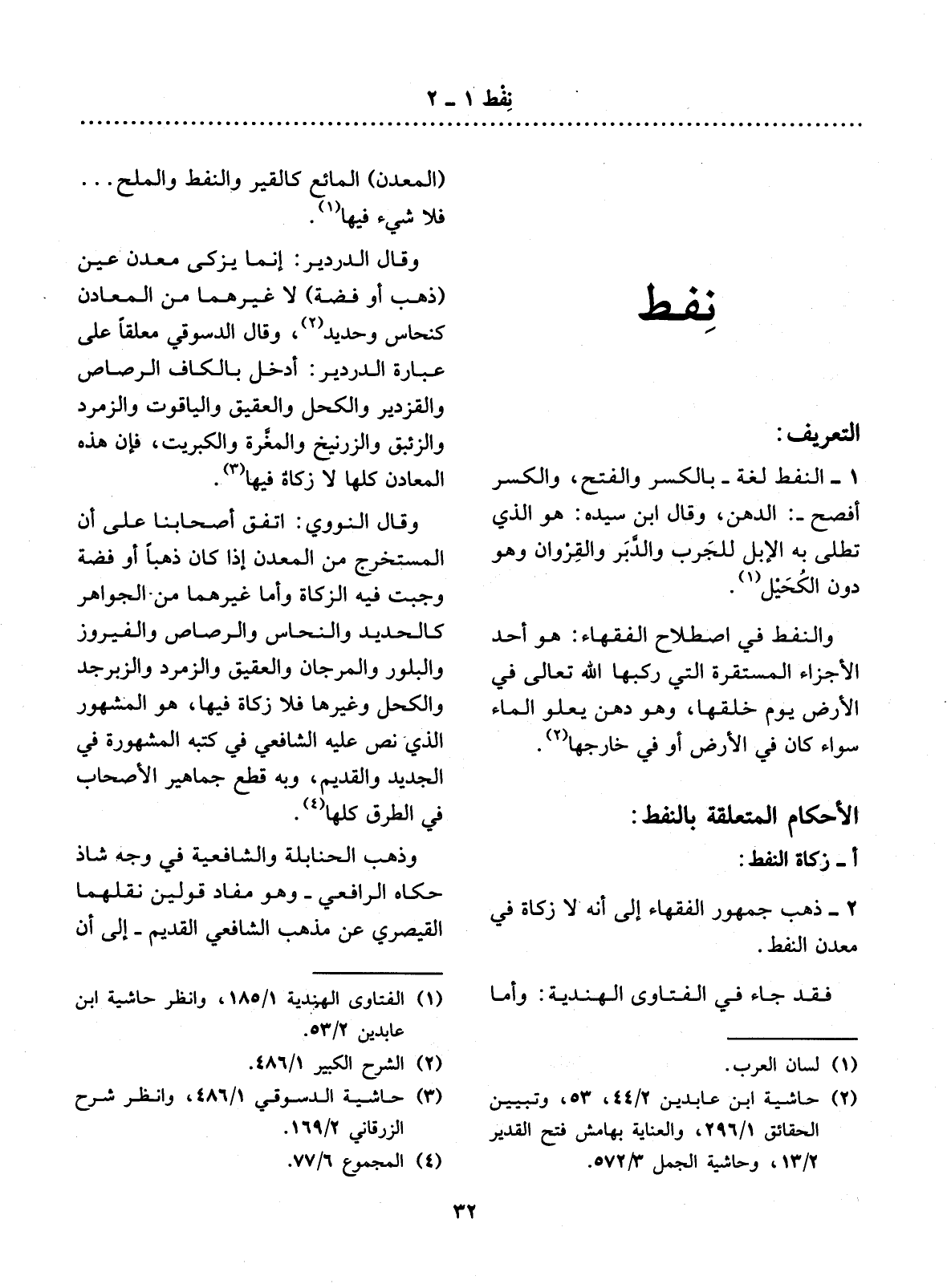2 - ذَهَبَ جُمْهُورُ الْفُقَهَاءِ إِلَى أَنَّهُ لاَ زَكَاةَ فِي مَعْدِنِ النِّفْطِ.