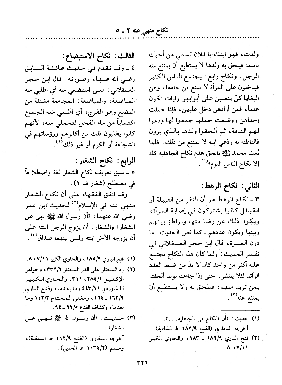 (1) حديث: " أن النكاح في الجاهلية. . . ". أخرجه البخاري (الفتح 9 / 182 ط السلفية)