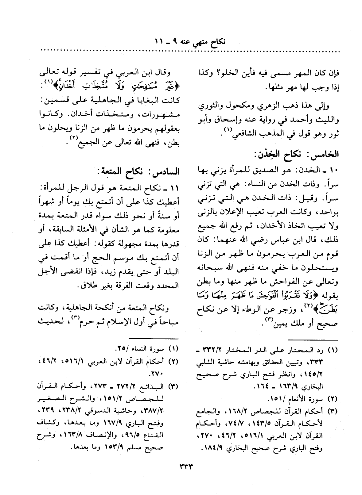 (1) رد المحتار على الدر المختار 2 / 332 - 333، وتبيين الحقائق وبهامشه حاشية الشلبي 2 / 145، وانظر فتح الباري شرح صحيح البخاري 9 / 163 - 164