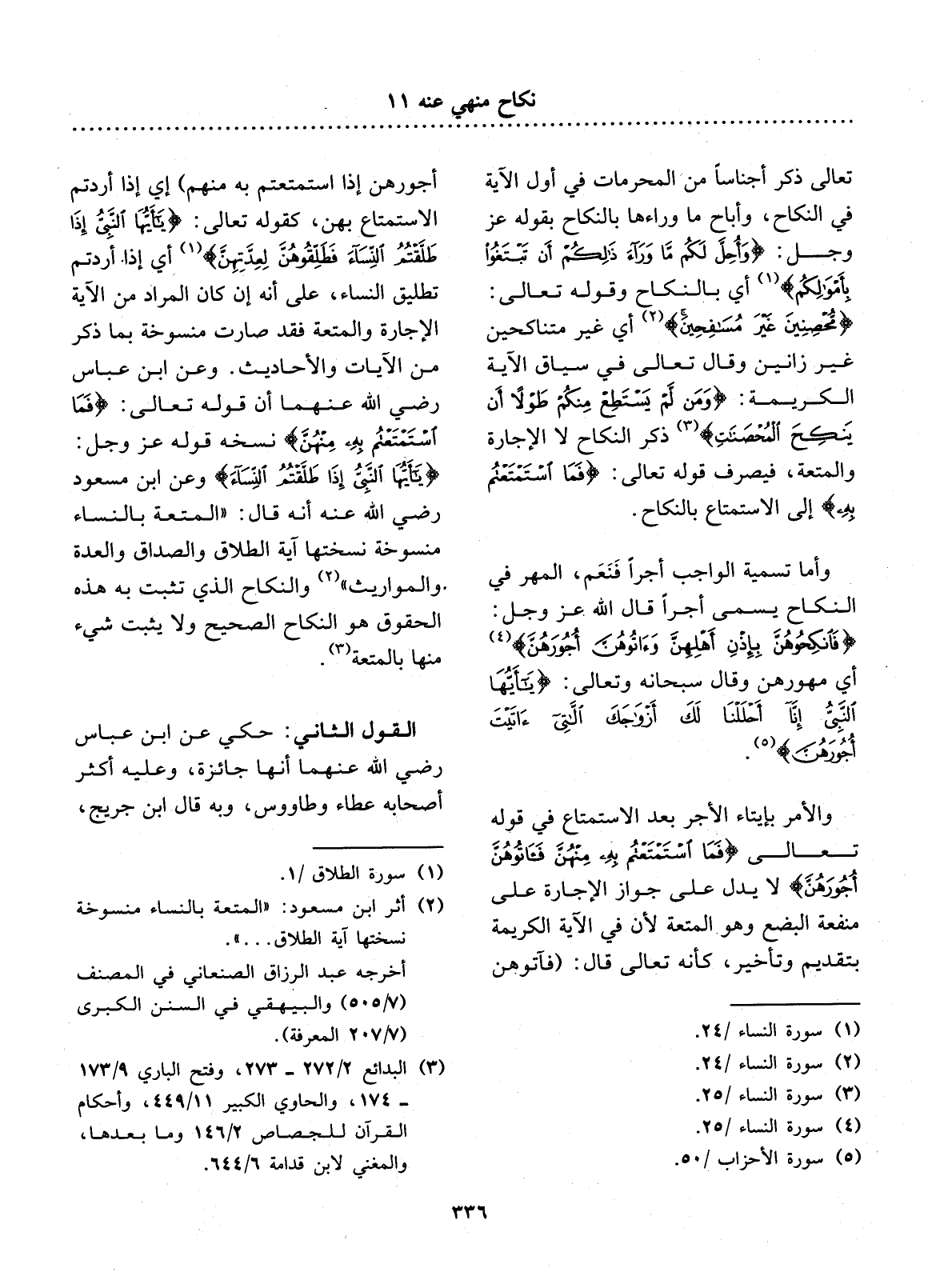 (2) أَثَر ابْن مَسْعُود: " الْمُتْعَة بِالنِّسَاءِ مَنْسُوخَة نُسْخَتِهَا آيَة الطَّلاَقِ. . . ". أَخْرَجَهُ عَبْد الرَّزَّاق الصَّنْعَانِيّ فِي الْمُصَنَّفِ (7 / 50 5) وَالْبَيْهَقِيّ فِي السُّنَنِ الْكُبْرَى (7 / 207 الْمَعْرِفَة)