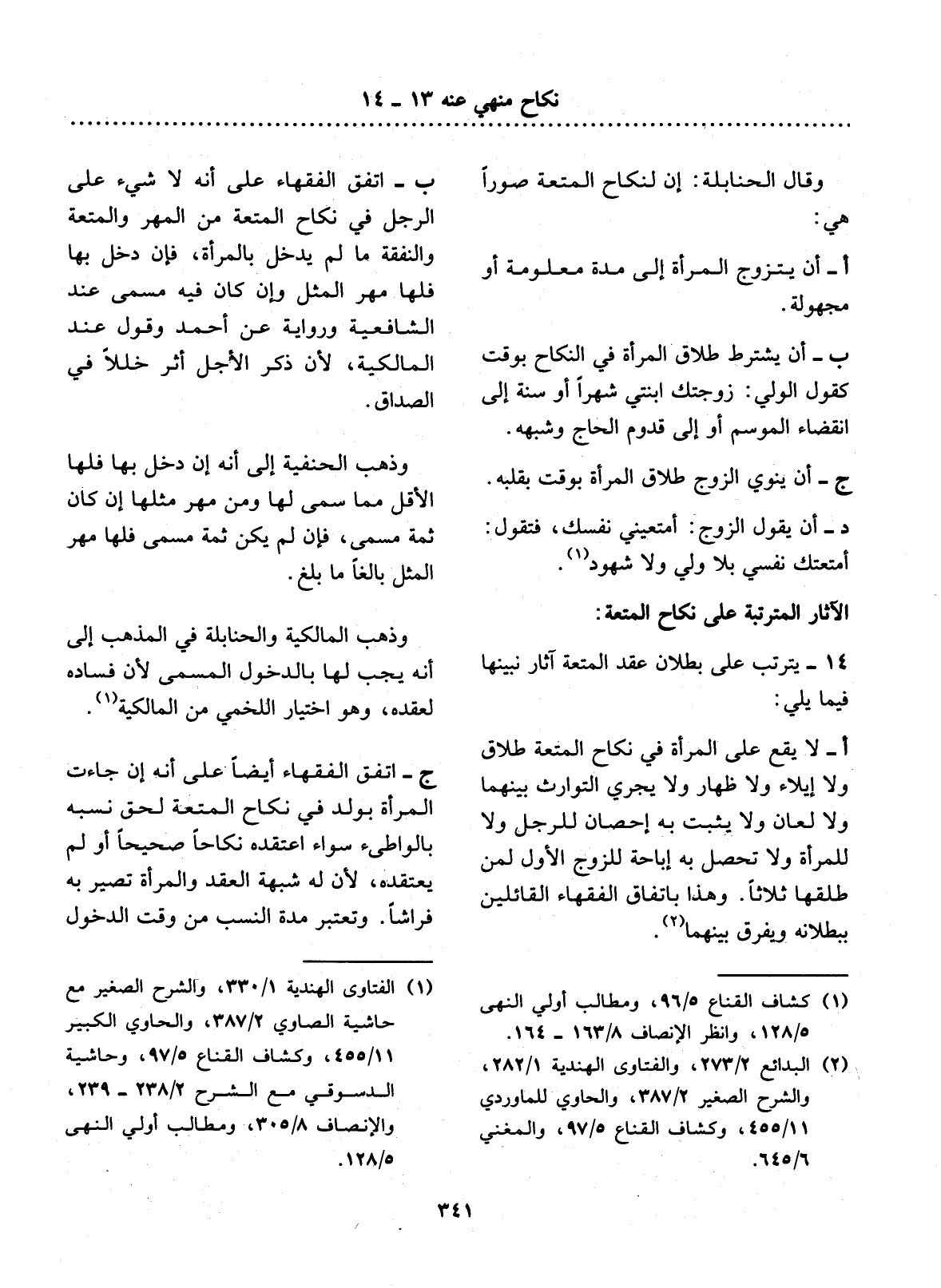 14 - يَتَرَتَّبُ عَلَى بُطْلاَنِ عَقْدِ الْمُتْعَةِ آثَارٌ نُبَيِّنُهَا فِيمَا يَلِي: