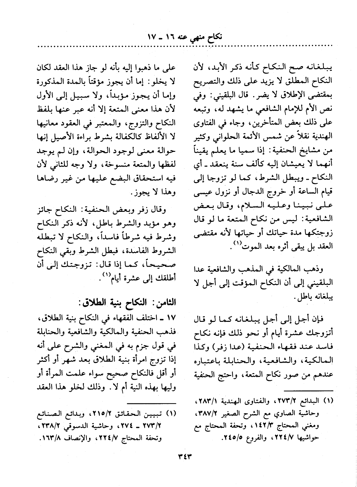 فَإِنْ أُجِّل إِلَى أَجَلٍ يَبْلُغَانِهِ كَمَا لَوْ قَال أَتَزَوَّجُكِ عَشَرَةَ أَيَّامٍ أَوْ نَحْوَ ذَلِكَ فَإِنَّهُ نِكَاحٌ فَاسِدٌ عِنْدَ فُقَهَاءِ الْحَنَفِيَّةِ (عَدَا زُفَرَ) وَكَذَا الْمَالِكِيَّةُ، وَالشَّافِعِيَّةُ، وَالْحَنَابِلَةُ بِاعْتِبَارِهِ عِنْدَهُمْ مِنْ صُوَرِ نِكَاحِ الْمُتْعَةِ، وَاحْتَجَّ الْحَنَفِيَّةُ