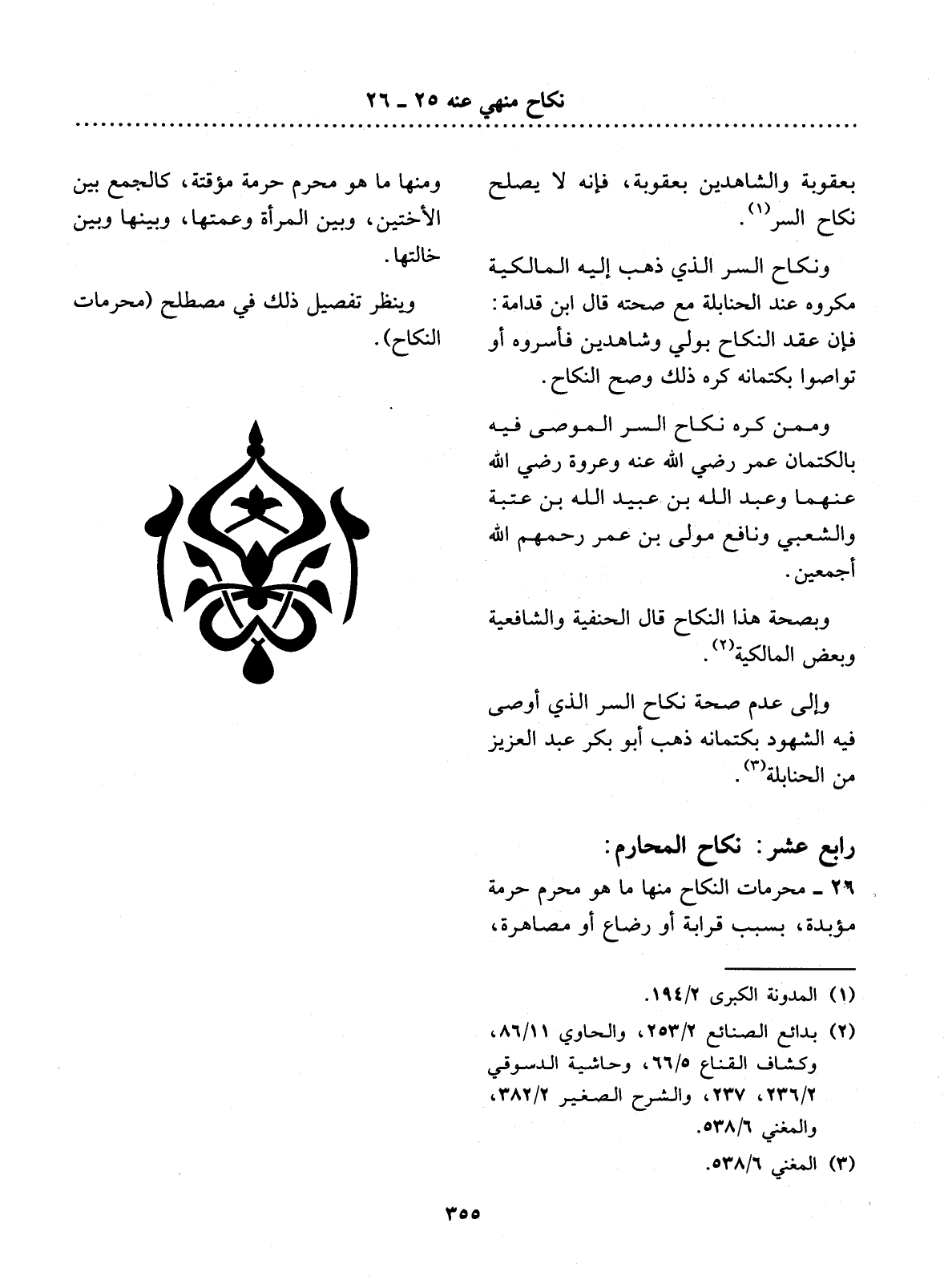 26 - مُحَرَّمَاتُ النِّكَاحِ مِنْهَا مَا هُوَ مُحَرَّمٌ حُرْمَةً مُؤَبَّدَةً، بِسَبَبِ قَرَابَةٍ أَوْ رَضَاعٍ أَوْ مُصَاهَرَةٍ،