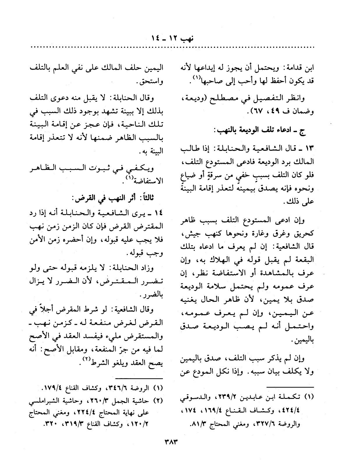 ج - ادِّعَاءُ تَلَفِ الْوَدِيعَةِ بِالنَّهْبِ: