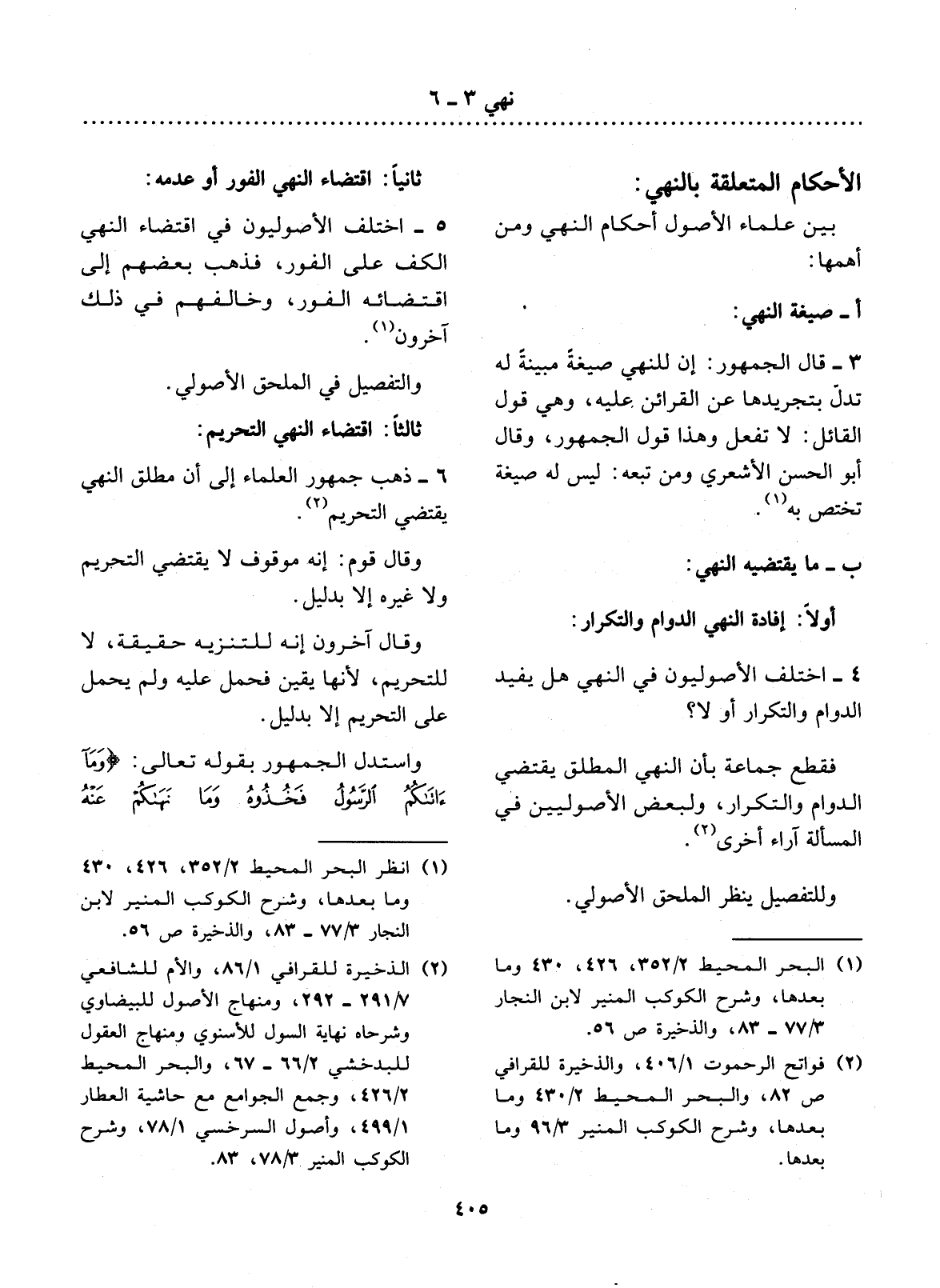 4 - اخْتَلَفَ الأُْصُولِيُّونَ فِي النَّهْيِ هَل يُفِيدُ الدَّوَامَ وَالتَّكْرَارَ أَوْ لاَ؟