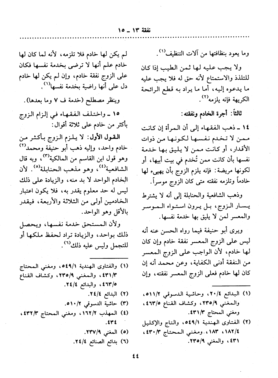 15 - وَاخْتَلَفَ الْفُقَهَاءُ فِي إِلْزَامِ الزَّوْجِ بِأَكْثَرَ مِنْ خَادِمٍ عَلَى ثَلاَثَةِ أَقْوَال: