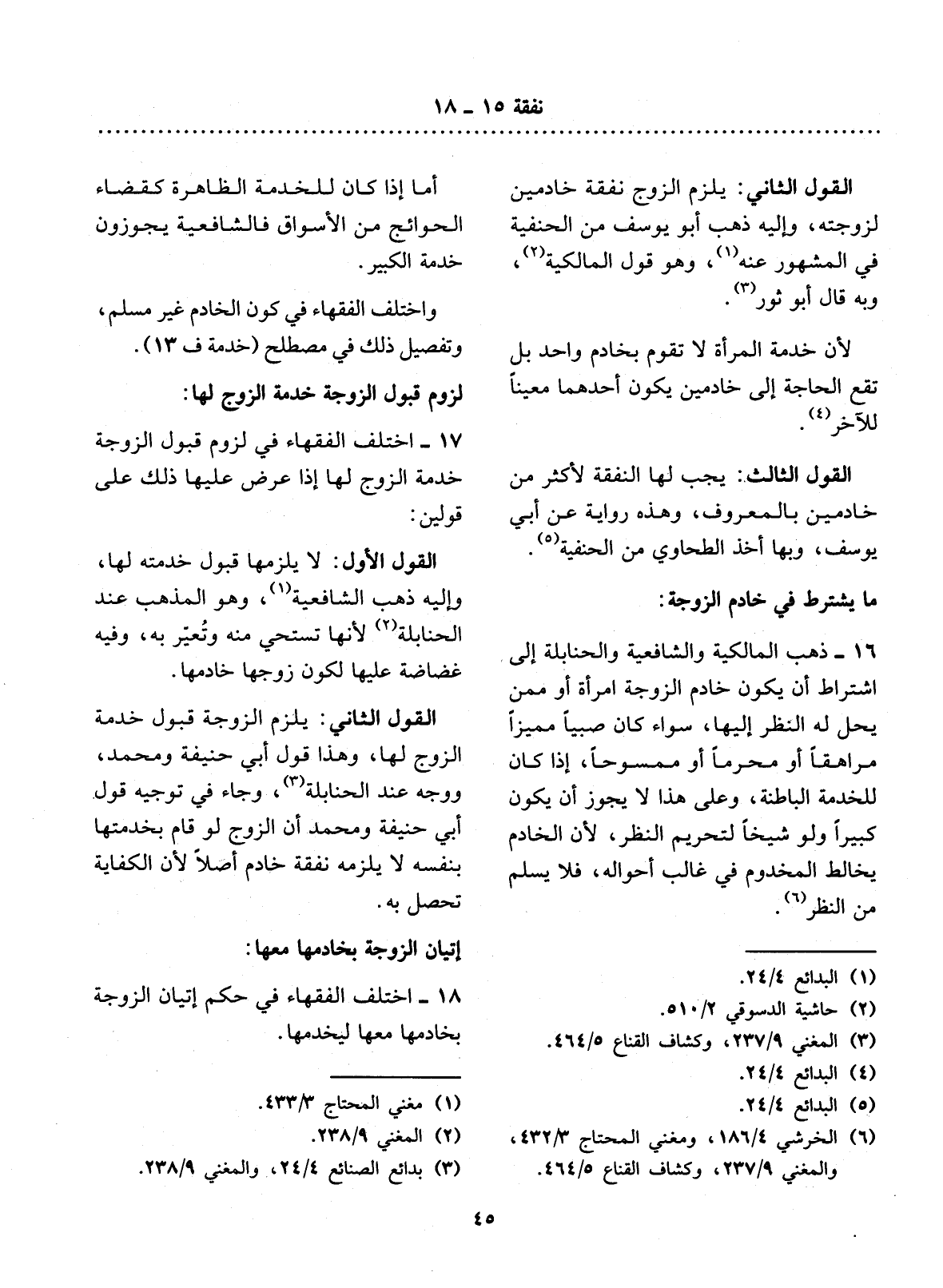 18 - اخْتَلَفَ الْفُقَهَاءُ فِي حُكْمِ إِتْيَانِ الزَّوْجَةِ بِخَادِمِهَا مَعَهَا لِيَخْدُمَهَا.