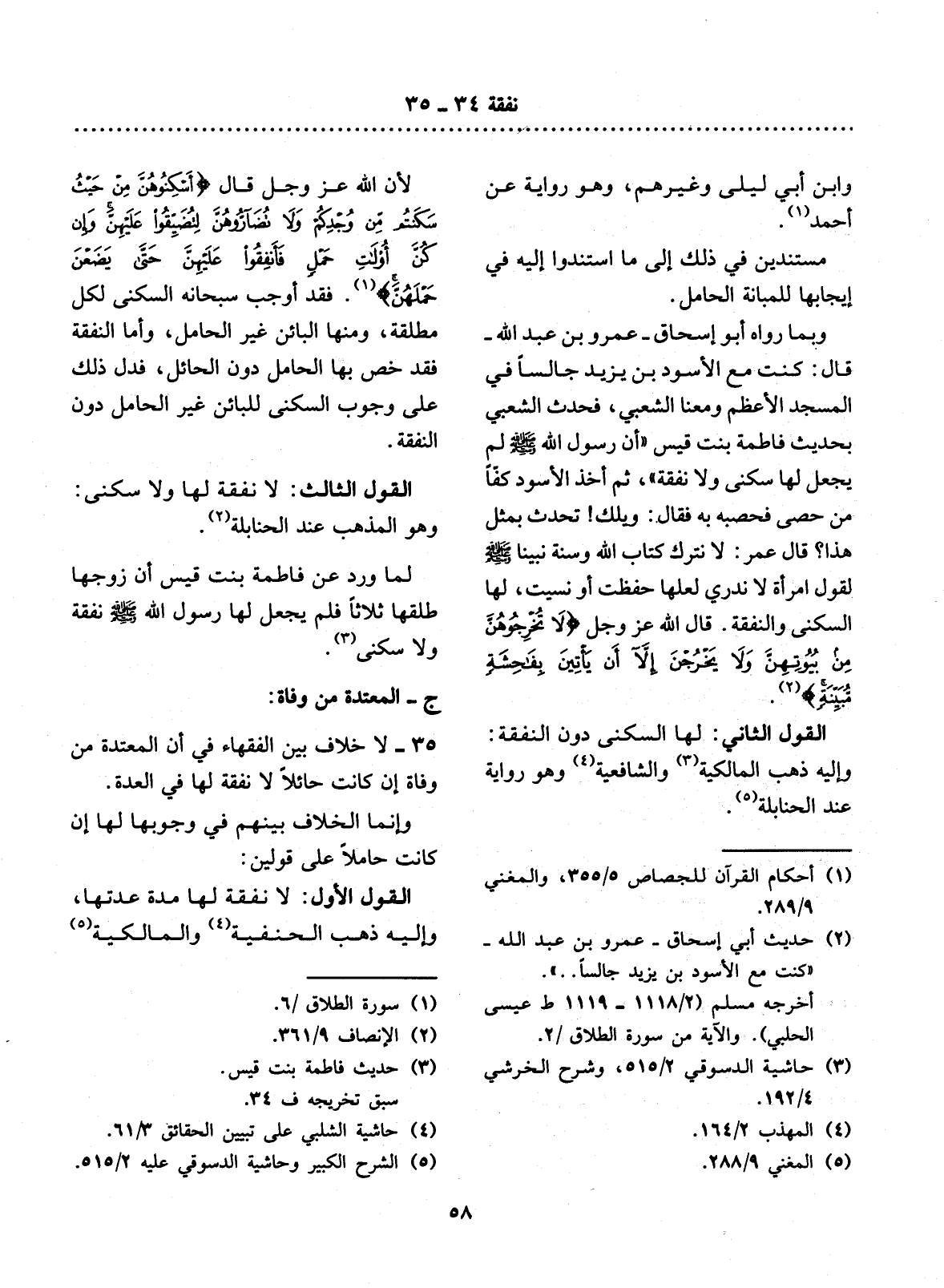 35 - لاَ خِلاَفَ بَيْنَ الْفُقَهَاءِ فِي أَنَّ الْمُعْتَدَّةَ مِنْ وَفَاةٍ إِنْ كَانَتْ حَائِلاً لاَ نَفَقَةَ لَهَا فِي الْعِدَّةِ.