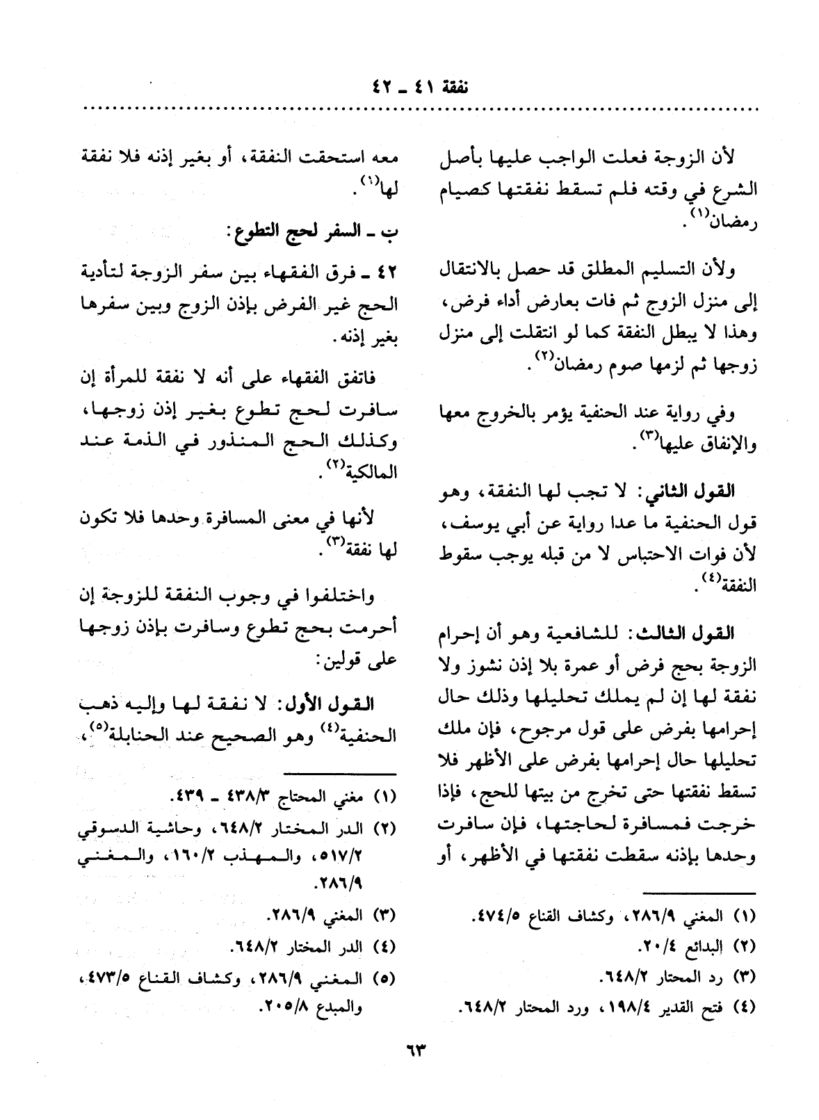 42 - فَرَّقَ الْفُقَهَاءُ بَيْنَ سَفَرِ الزَّوْجَةِ لِتَأْدِيَةِ الْحَجِّ غَيْرِ الْفَرْضِ بِإِذْنِ الزَّوْجِ وَبَيْنَ سَفَرِهَا بِغَيْرِ إِذْنِهِ.