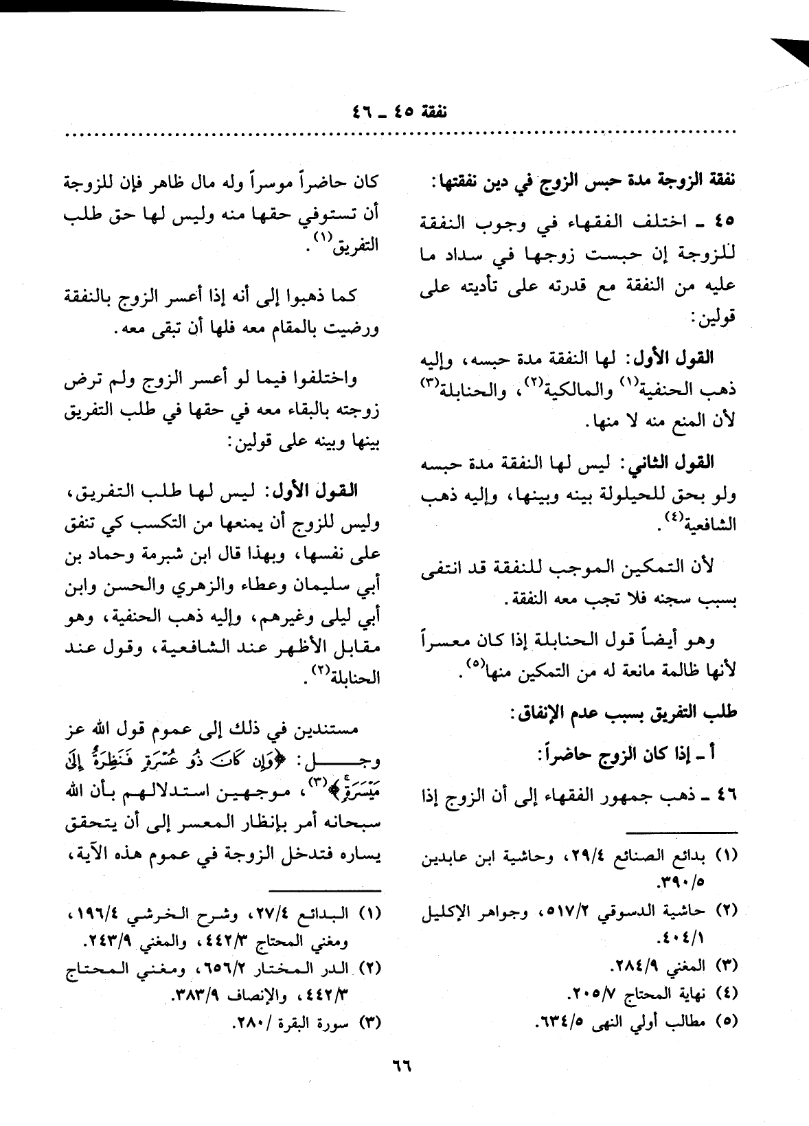 46 - ذَهَبَ جُمْهُورُ الْفُقَهَاءِ إِلَى أَنَّ الزَّوْجَ إِذَا