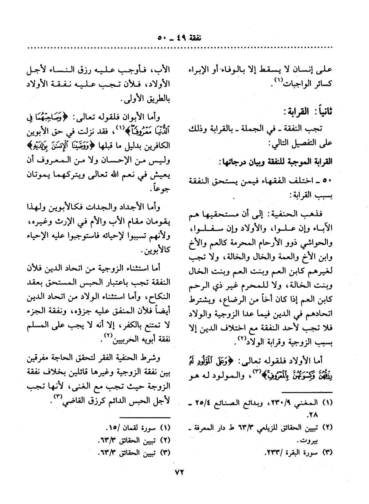 50 - اخْتَلَفَ الْفُقَهَاءُ فِيمَنْ يَسْتَحِقُّ النَّفَقَةَ بِسَبَبِ الْقَرَابَةِ: