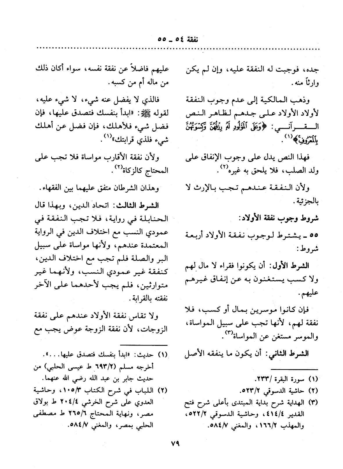 55 - يُشْتَرَطُ لِوُجُوبِ نَفَقَةِ الأَْوْلاَدِ أَرْبَعَةُ شُرُوطٍ: