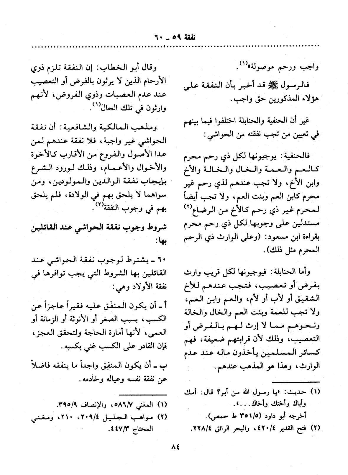 غَيْرَ أَنَّ الْحَنَفِيَّةَ وَالْحَنَابِلَةَ اخْتَلَفُوا فِيمَا بَيْنَهُمْ فِي تَعْيِينِ مَنْ تَجِبُ نَفَقَتُهُ مِنَ الْحَوَاشِي: