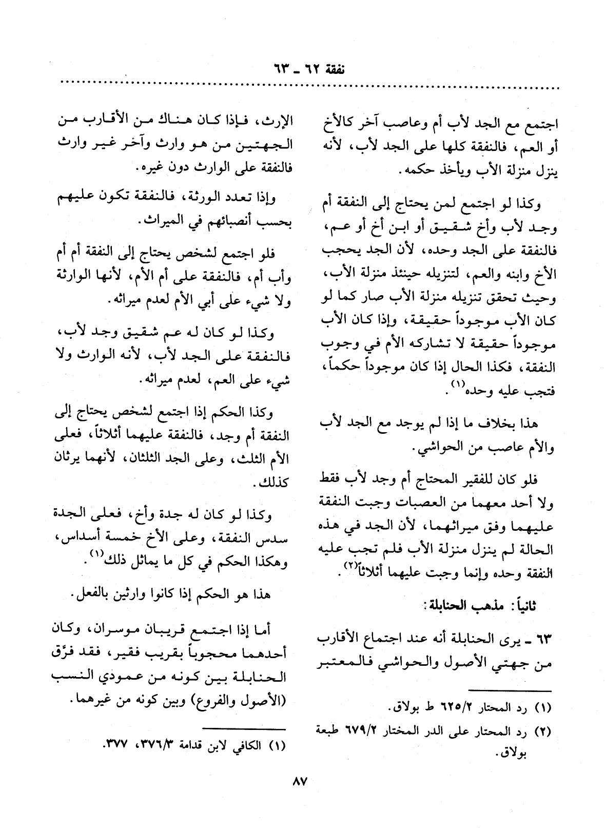 63 - يَرَى الْحَنَابِلَةُ أَنَّهُ عِنْدَ اجْتِمَاعِ الأَْقَارِبِ مِنْ جِهَتَيِ الأُْصُول وَالْحَوَاشِي فَالْمُعْتَبَرُ