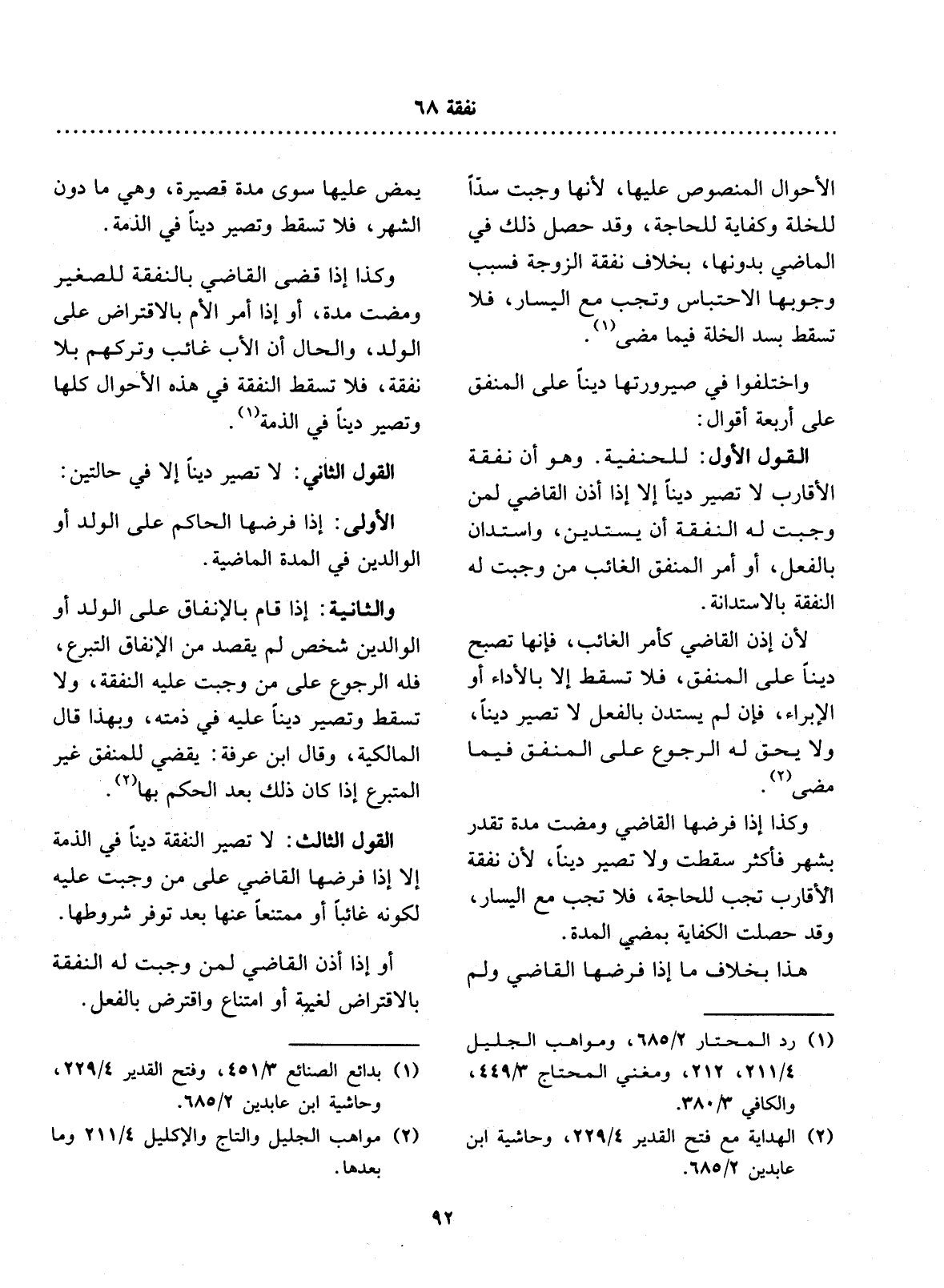 (1) بدائع الصنائع 3 / 451، وفتح القدير 4 / 229، وحاشية ابن عابدين 2 / 685.