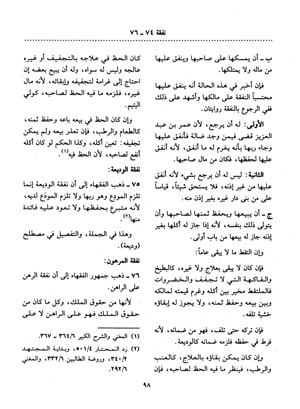 76 - ذَهَبَ جُمْهُورُ الْفُقَهَاءِ إِلَى أَنَّ نَفَقَةَ الرَّهْنِ عَلَى الرَّاهِنِ.