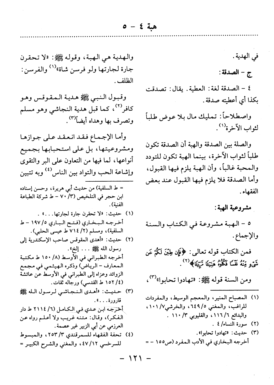 5 - الْهِبَةُ مَشْرُوعَةٌ فِي الْكِتَابِ وَالسُّنَّةِ وَالإِْجْمَاعِ.