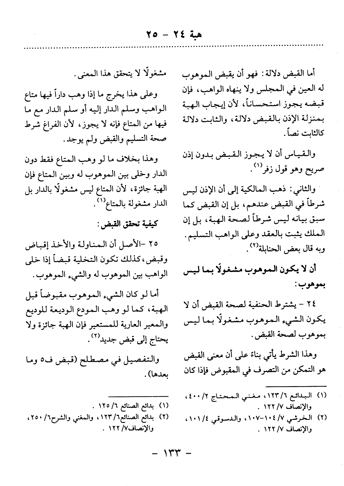 (2) بدائع الصنائع 6 / 123، والمغني والشرح 6 / 250، والإنصاف 7 / 122.
