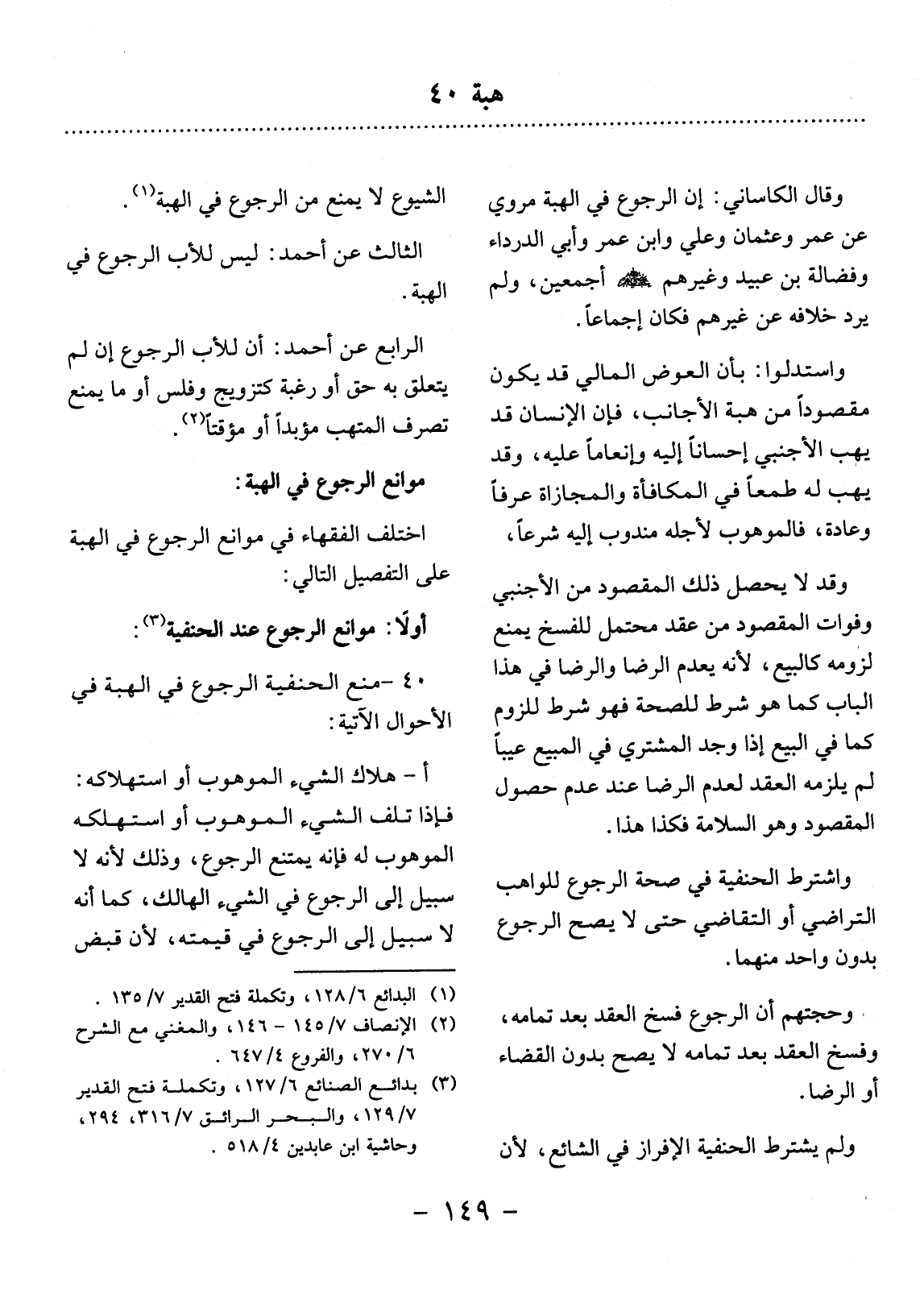 (1) الْبَدَائِع 6 / 128، وَتَكْمِلَة فَتْح الْقَدِير 7 / 135.