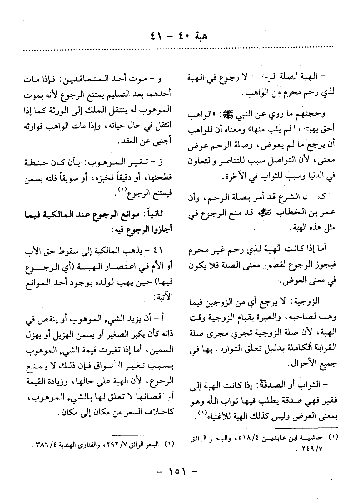 - الْهِبَةُ لِصِلَةِ الرَّحِمِ - لاَ رُجُوعَ فِي الْهِبَةِ لِذِي رَحِمِ مُحَرَّمٍ مِنَ الْوَاهِبِ.