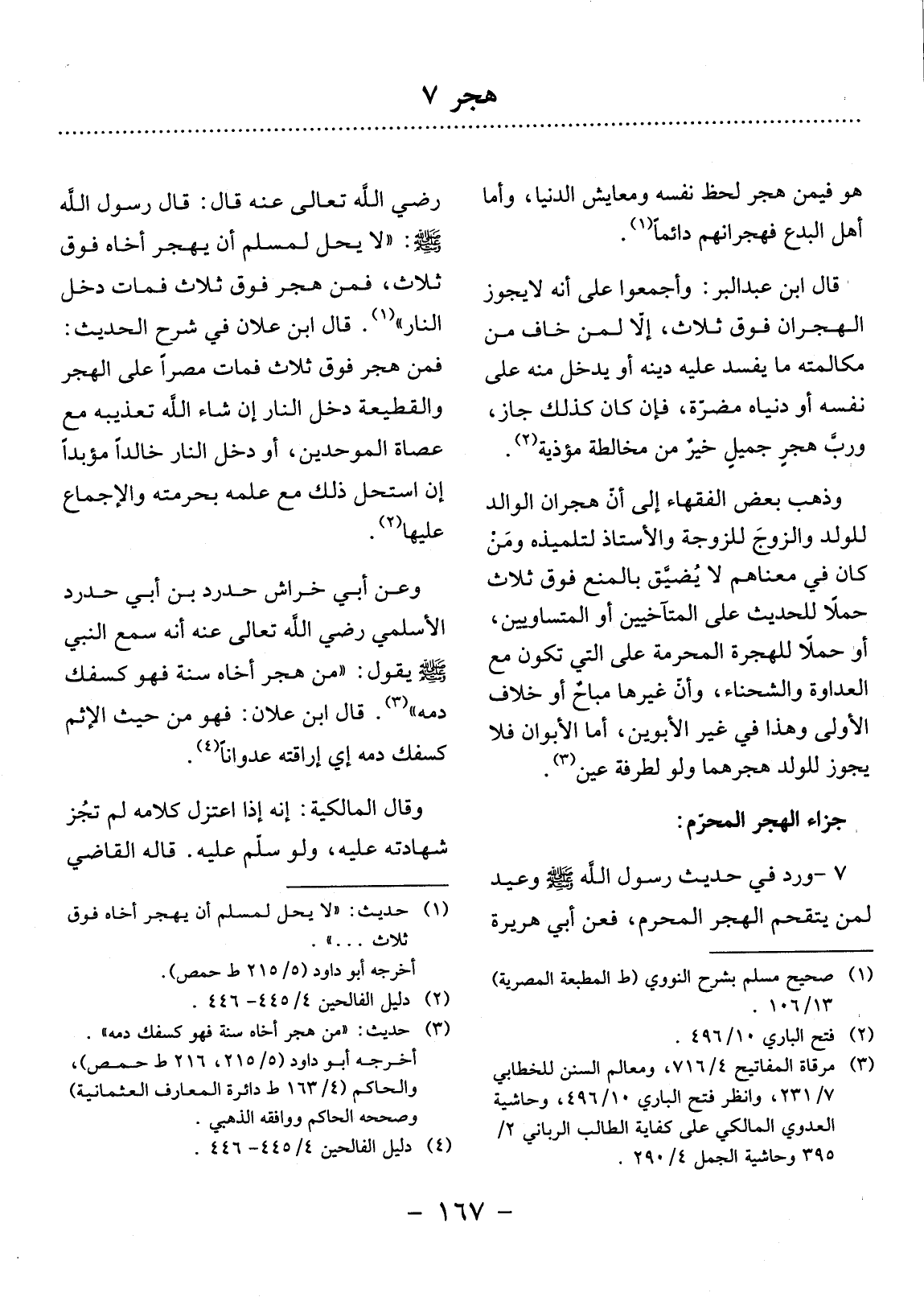 (1) حَدِيث: " لاَ يَحْل لِمُسْلِم أَنْ يَهْجُرَ أَخَاهُ فَوْقَ ثَلاَث. . . ". أَخْرَجَهُ أَبُو دَاوُد (5 / 215 ط حِمْص) .
